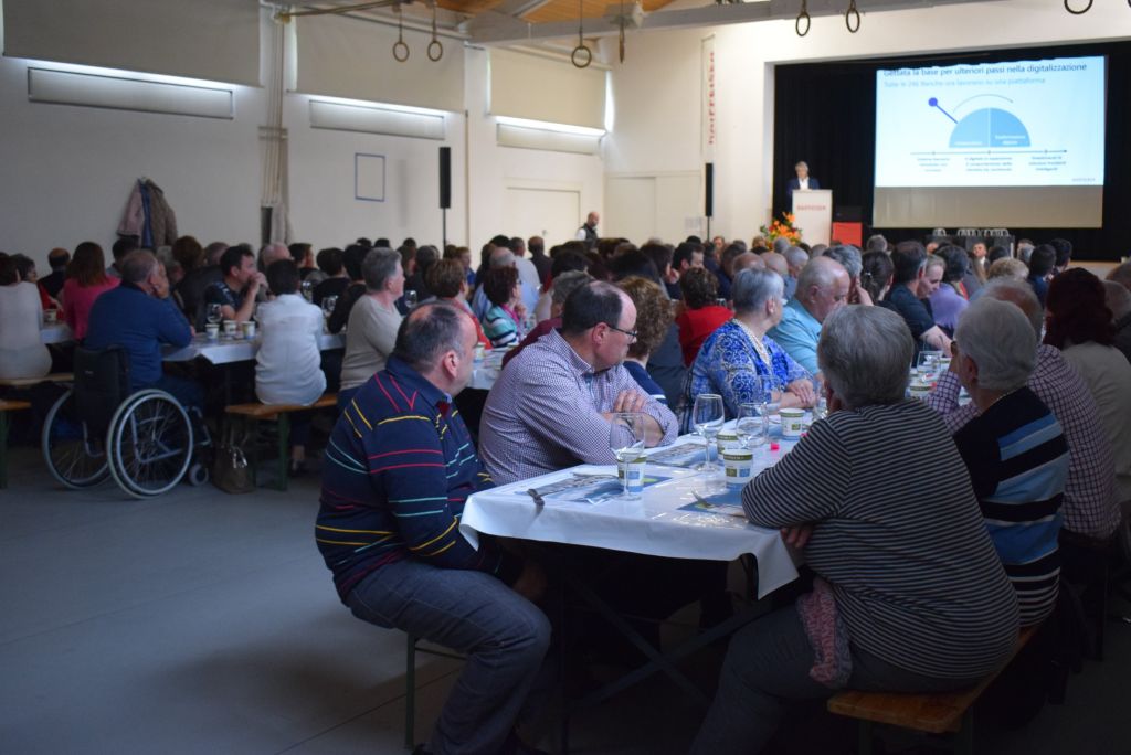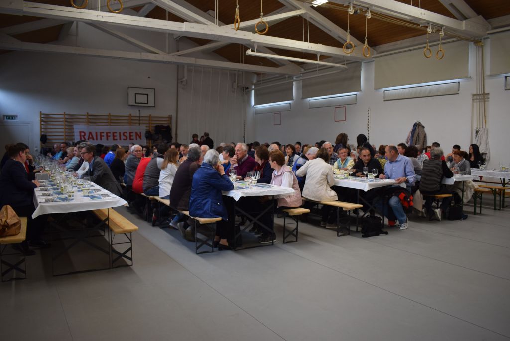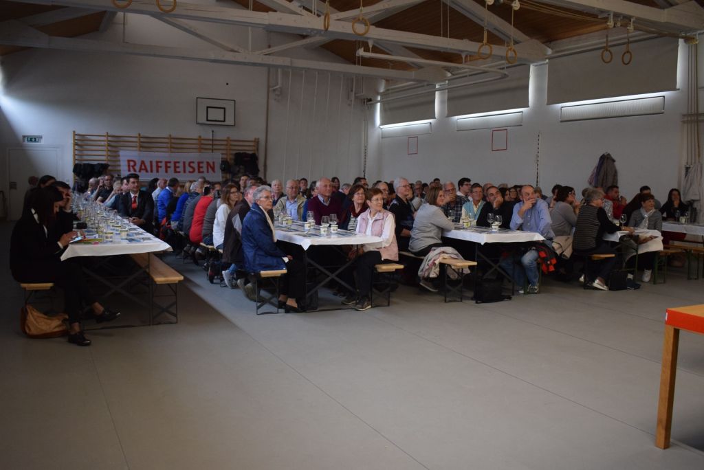 Si è svolta ieri sera, sabato 18 maggio 2019, nelle palestre delle scuole elementari di Brusio l'annuale cena dei soci della Banca Raiffeisen Valposchiavo. Presenti in palestra 160 soci. Ecco alcune immagini della serata.