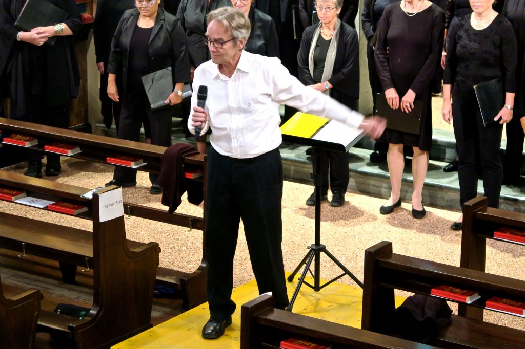 Al concerto il zurighese coro misto «Kantorei Stäfa», con l’aggiunta di qualche ospite, si è presentato con complessivamente trentacinque cantori, una organista, oltre al direttore Miké Noak.