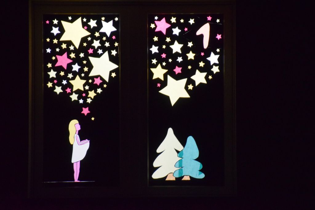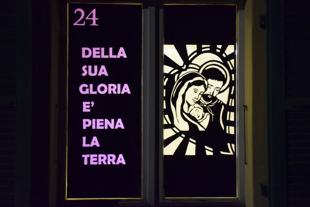 Ecco le foto delle 24 finestre di Prada illuminate a festa durante il periodo d'Avvento.