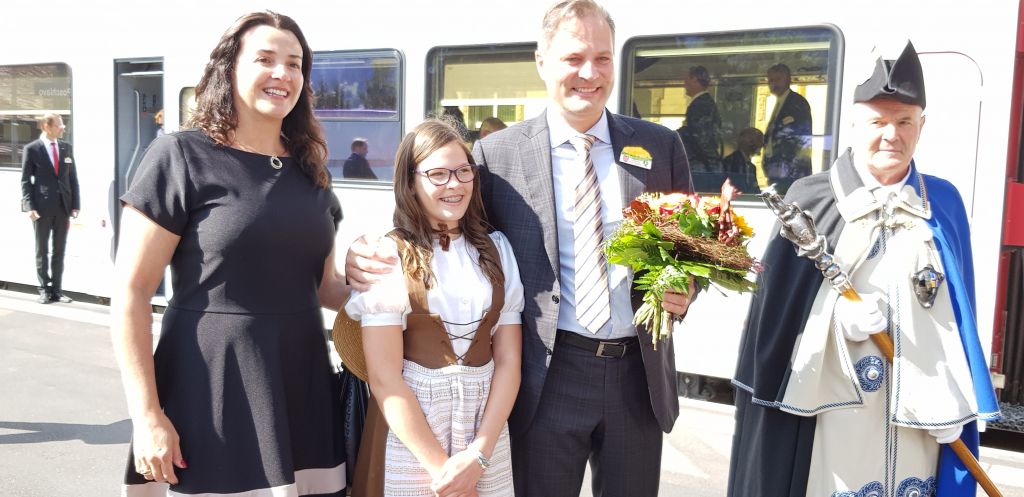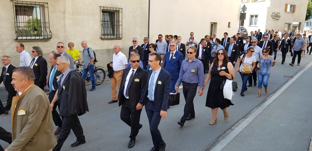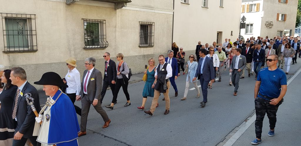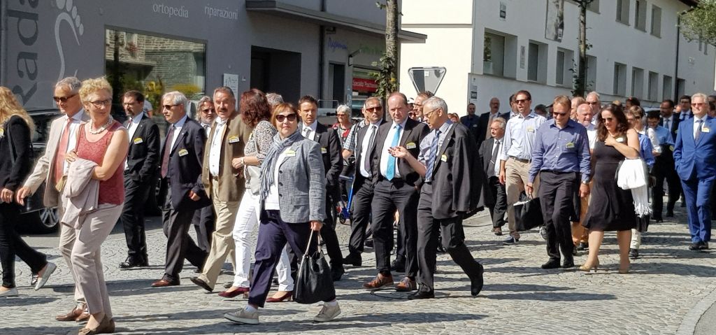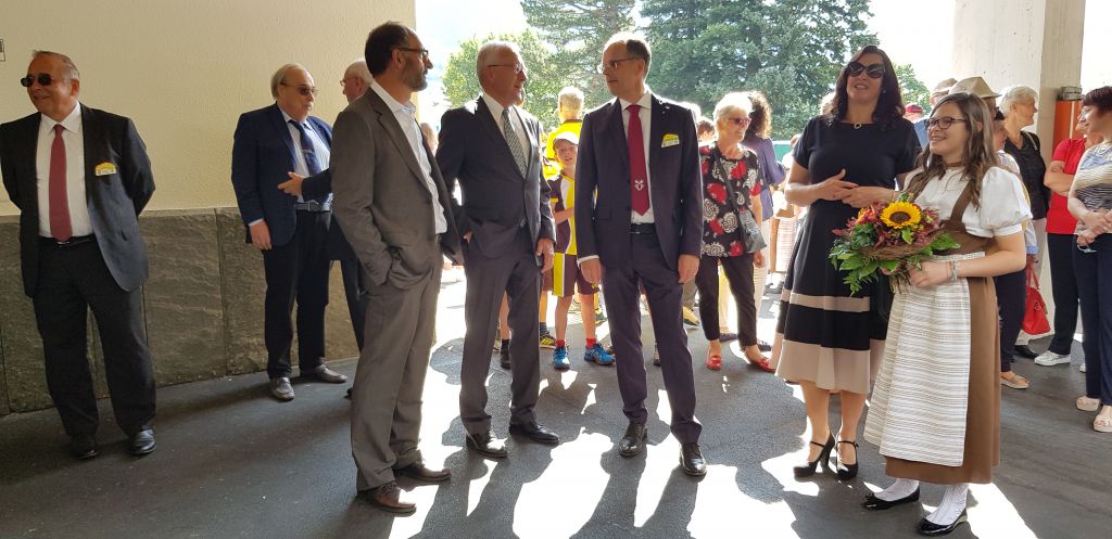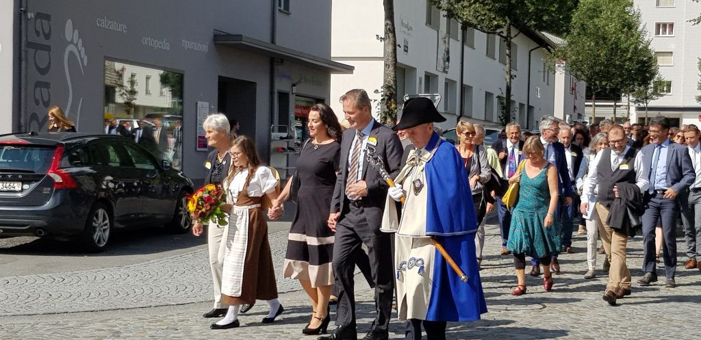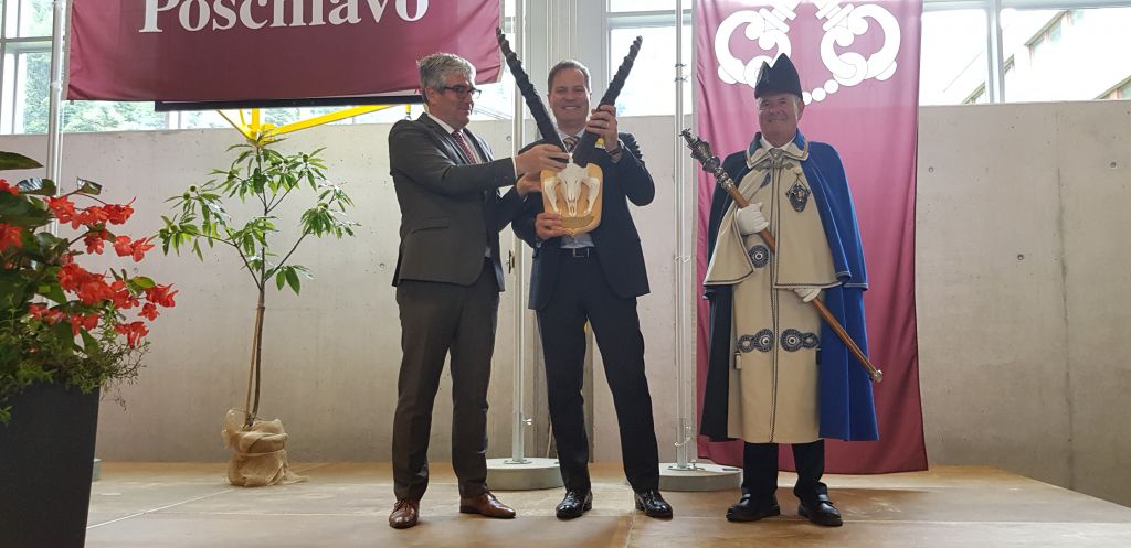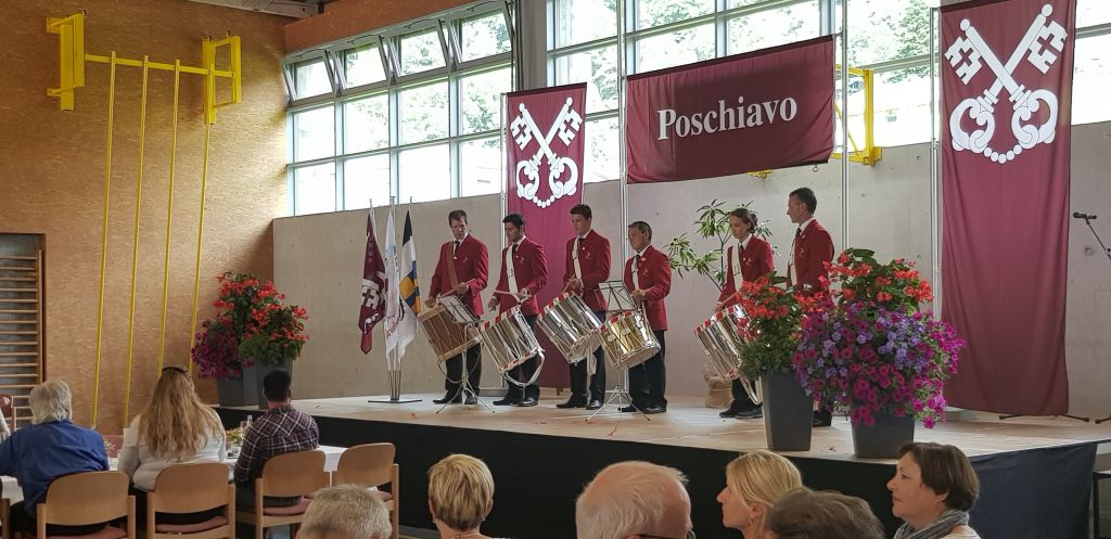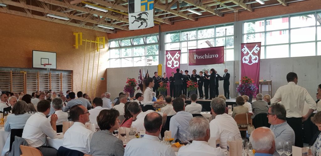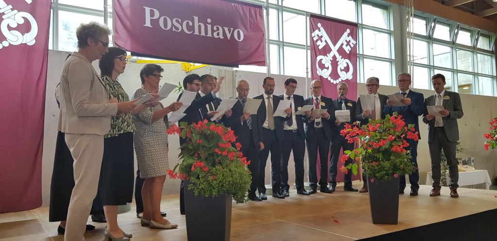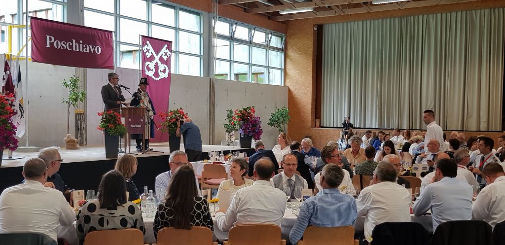 È stata una bella giornata di sole a dare il saluto di benvenuto al treno presidenziale partito da Coira questa mattina e diretto a Poschiavo con a bordo i membri del Governo e del Parlamento grigionese. La festa d'insediamento per Alessandro Della Vedova, nuovo presidente del Gran Consiglio, ha preso il via alla stazione di Poschiavo con l'arrivo degli ospiti, è seguito il corteo accompagnato da diverse associazioni della Valposchiavo e si è concluso alle palestre di Santa Maria con i discorsi ufficiali e l'aperitivo offerto a tutta la popolazione. Al termine, pranzo conviviale per i membri del Governo ed i parlamentari grigionesi che a turno hanno esposto i loro discorsi in occasione dei festeggiamenti.