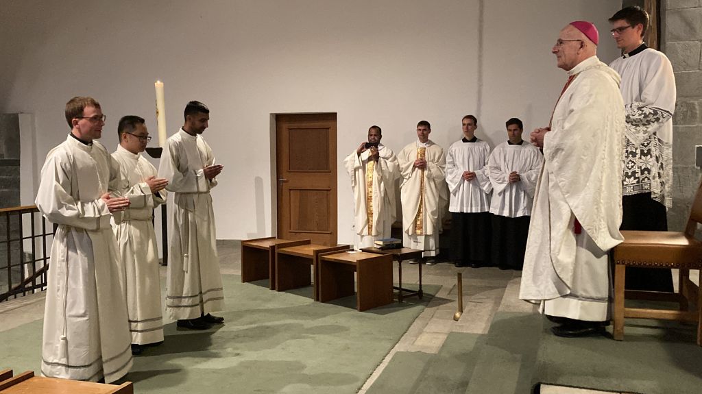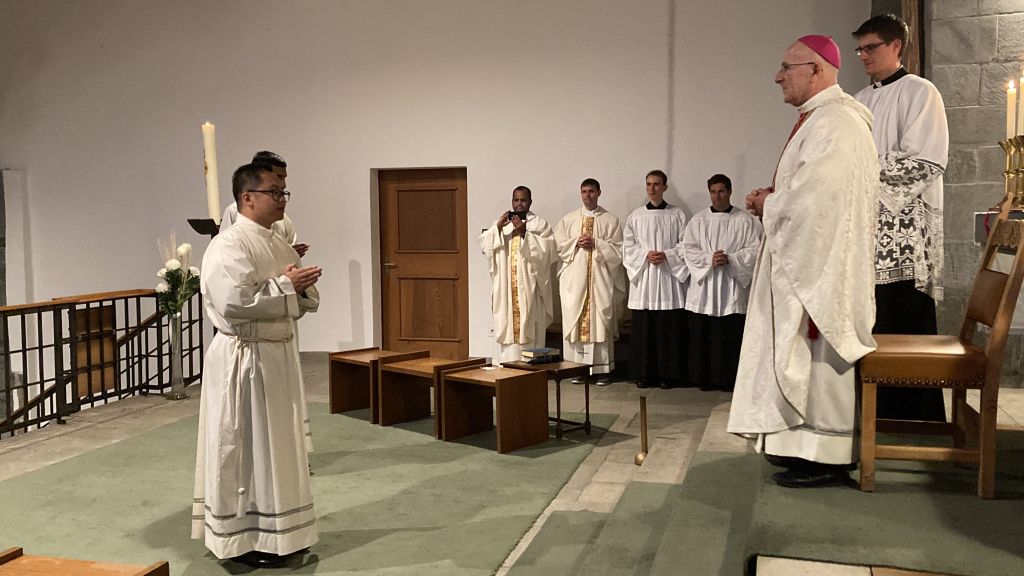 Mercoledì 4 maggio 2022, alle ore 20.00, presso la Cappella del Seminario St. Luzi di Coira, il Vescovo Joseph Maria Bonnemain ha ammesso ufficialmente il seminarista Matteo Tuena, della Parrocchia San Bernardo in Prada, tra i candidati al ministero del diaconato e del presbiterato. Il rito di ammissione consiste, da parte del candidato seminarista, nel manifestare pubblicamente, cioè davanti al Vescovo diocesano, la propria volontà di offrirsi a Dio e alla Chiesa per esercitare l'Ordine Sacro. La Chiesa, da parte sua, ricevendo questa offerta, lo sceglie e lo chiama perché si prepari a ricevere l'Ordine Sacro e sia in tal modo regolarmente ammesso tra i candidati al diaconato e al presbiterato. Il rito di ammissione tra i candidati al diaconato e al presbiterato si celebra quando risulta che il loro proposito, convalidato dalle doti richieste, ha raggiunto una sufficiente maturazione. Assieme a Matteo, sono stati ammessi ufficialmente anche i seminaristi: Agil Raju, Bernard Ramos e Ernst Niederberger.