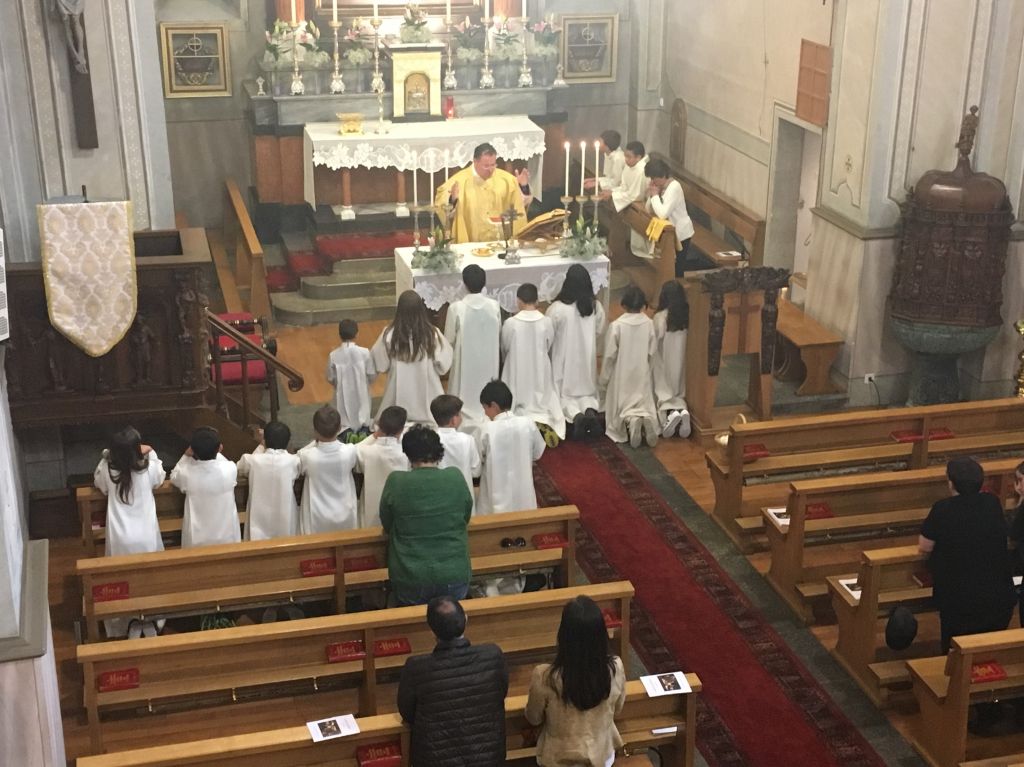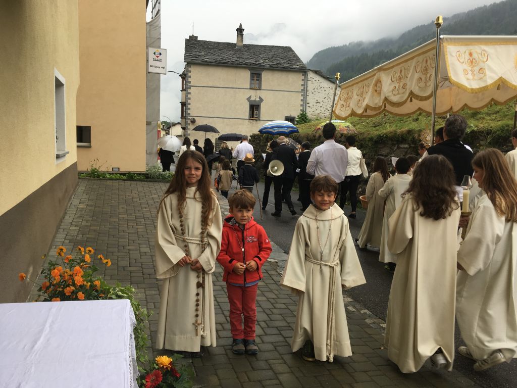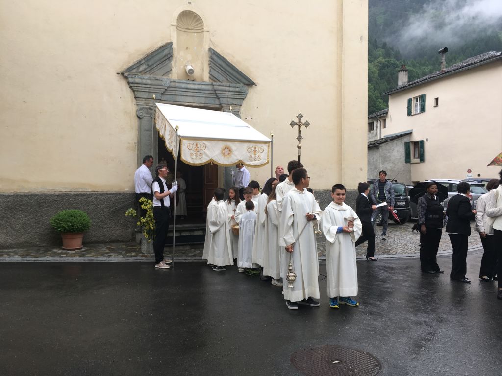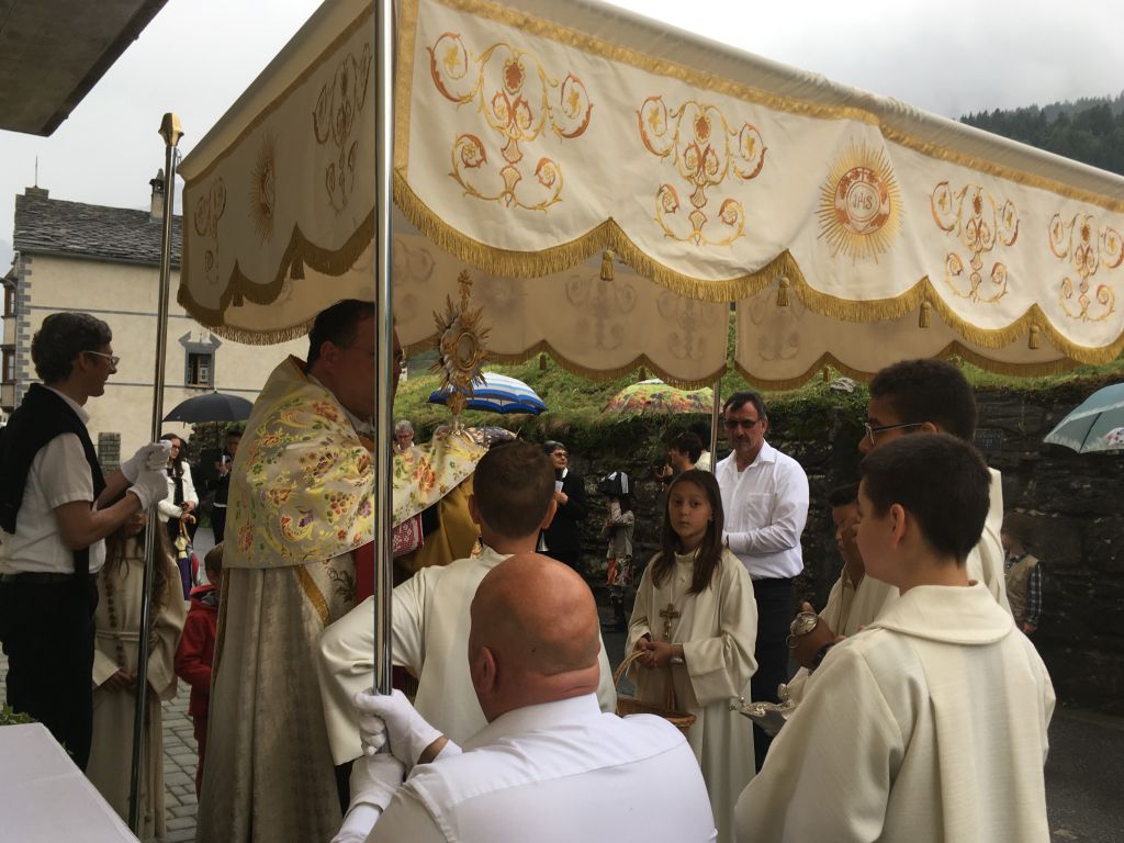 Galleria fotografica della S. Messa Solenne del Santissimo Corpo e Sangue di Cristo, Corpus Domini celebrata dal parroco Don Davide Redaelli, "i quadri viventi" lungo il percorso della Processione Eucaristica tra le vie di Prada fin verso la Chiesa dell'Annunziata.