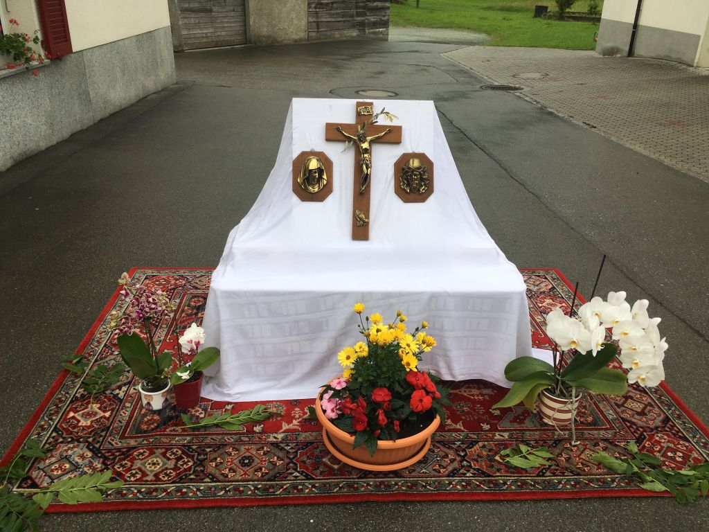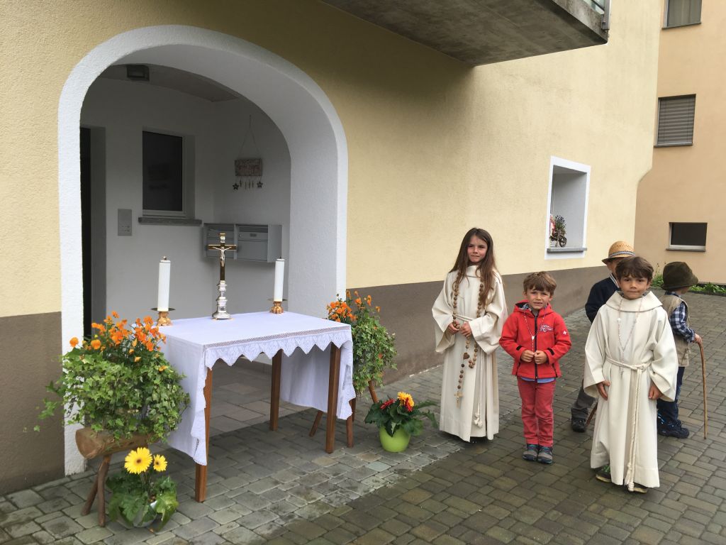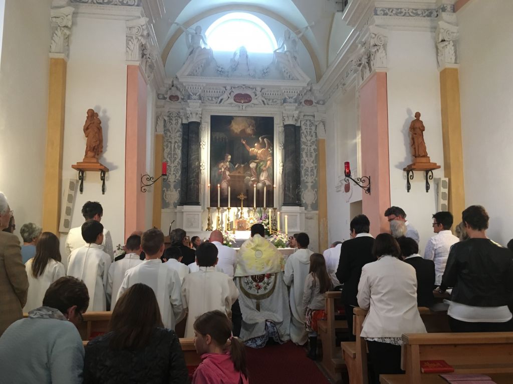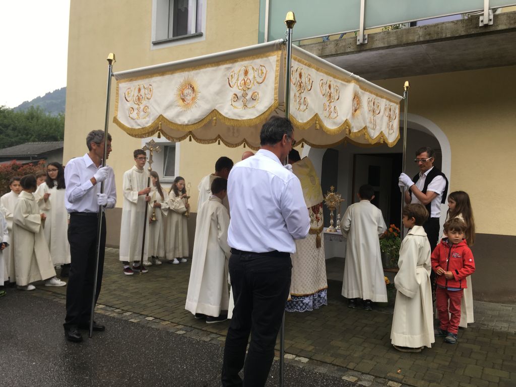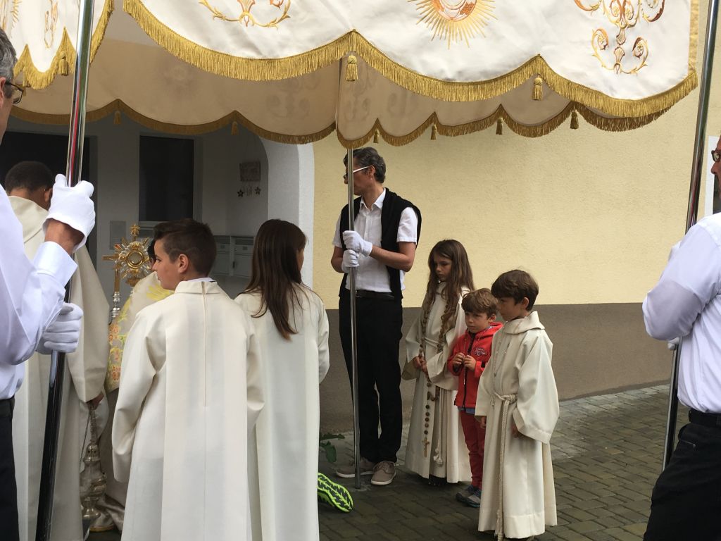 Galleria fotografica della S. Messa Solenne del Santissimo Corpo e Sangue di Cristo, Corpus Domini celebrata dal parroco Don Davide Redaelli, "i quadri viventi" lungo il percorso della Processione Eucaristica tra le vie di Prada fin verso la Chiesa dell'Annunziata.