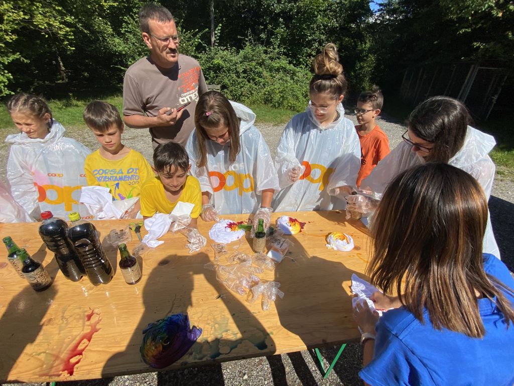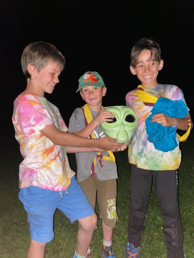 A causa della pandemia non è stato possibile fare tutte le visite e le attività che in genere facevano parte del programma, ma qualcosa da fare lo abbiamo trovato comunque. Infatti, un alieno è atterrato nelle vicinanze del nostro campo base e ci ha chiesto aiuto per poter tornare sul suo pianeta! Le quattro pattuglie si sono quindi date da fare: bisognava tradurre dei messaggi in una strana lingua aliena, colorare le magliette per seguire la moda del pianeta EPA, costruire astronavi super-tecnologiche per aiutare il nostro nuovo amico alieno e collezionare punti per poter vincere contro le altre pattuglie in gara. Oltre alla vita di campo ci siamo comunque concessi una visita allo zoo di Zurigo, alcuni tuffi in piscina, una gita sul Kronberg, una discesa con dei bob dalla montagna e tante altre esperienze indimenticabili.