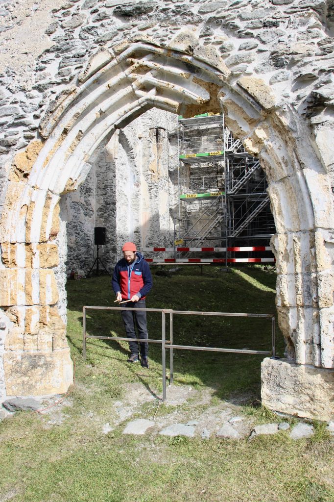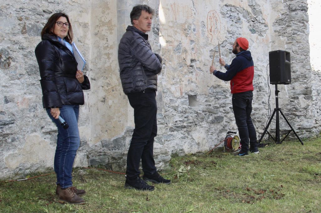 «Speriamo di riuscire a completare la ristrutturazione entro la fine del 2021». Sabato pomeriggio Rosita Fasciati, presidente della Fondazione San Gaudenzio, ha fatto il punto sulla situazione dei lavori della chiesa situata su un pendio sopra Casaccia. Di fronte ad alcune decine di persone provenienti dalla Bregaglia e da altri territori, ha descritto gli interventi svolti e quelli in programma nella parte del coro. Nel corso dell’iniziativa sono intervenuti anche Albina Cereghetti del Servizio monumenti e Manuel Janosa del Servizio archeologico dei Grigioni, oltre a Rodolfo Fasciati, l’architetto che ha curato la ristrutturazione sin dall’inizio degli interventi. Il pubblico ha applaudito il batterista, percussionista e artista Julian Sartorius, che ha suonato in vari ambienti dell'edificio.