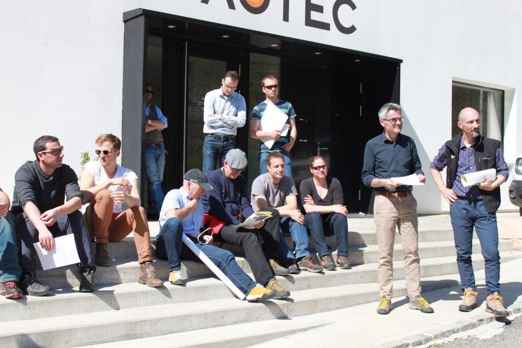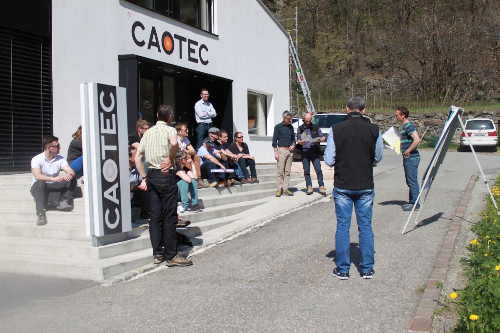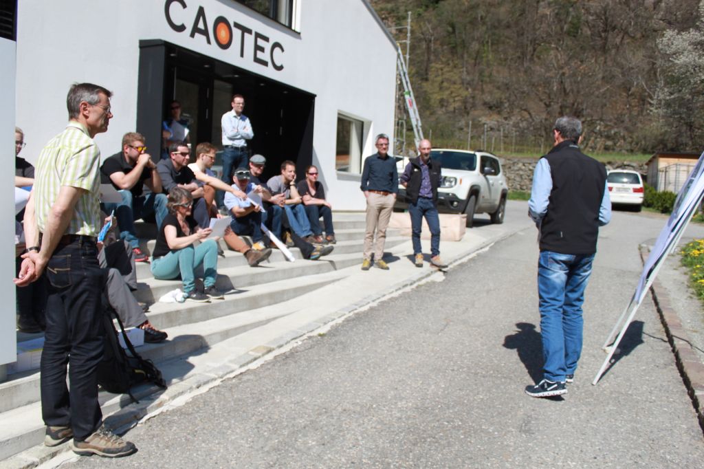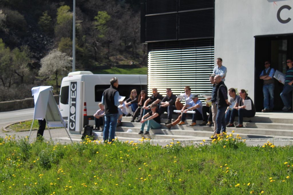 In seguito sopralluogo al viadotto elicoidale di Brusio e spostamento sul piazzale della ditta Caotec di Campascio per la rispettiva giornata formativa. Tra i diversi partecipanti alcuni collaboratori e collaboratrici del Dipartimento costruzioni, trasporti e foreste e il personale dell’Ufficio foreste e pericoli naturali.