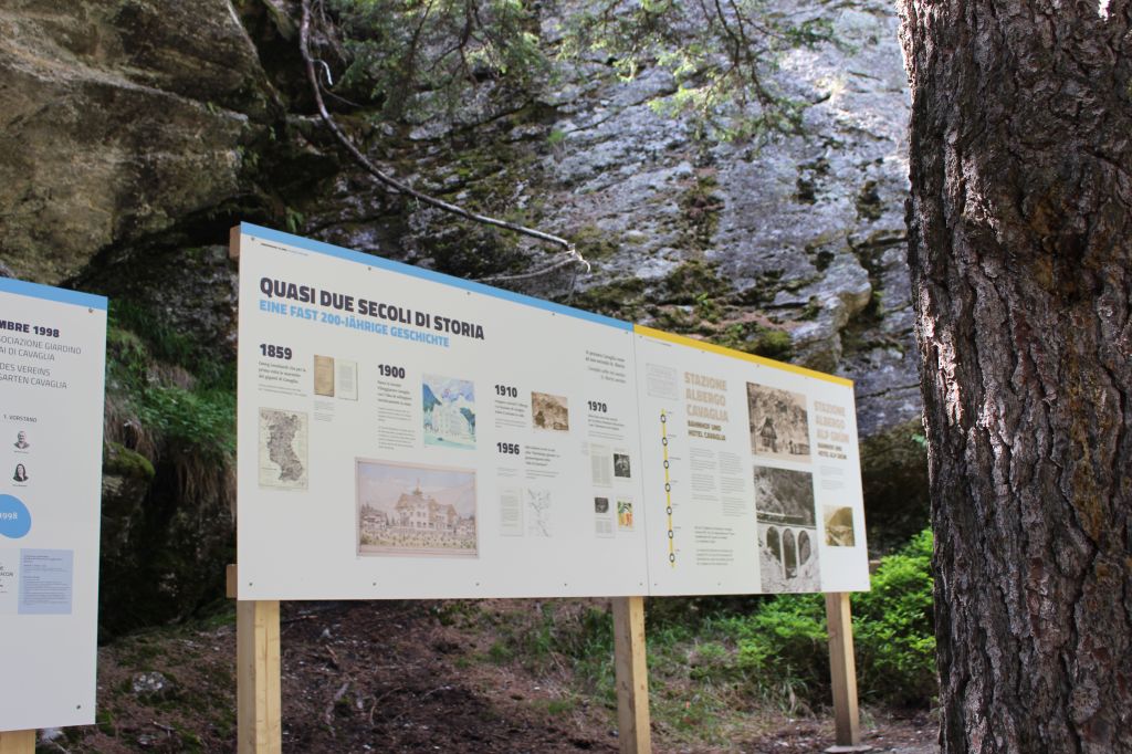 Le immagini, collocate all’ingresso del Giardino e accompagnate da esaurienti didascalie, illustrano la storia di Cavaglia e delle marmitte, le gigantesche pietre scavate da millenarie glaciazioni.