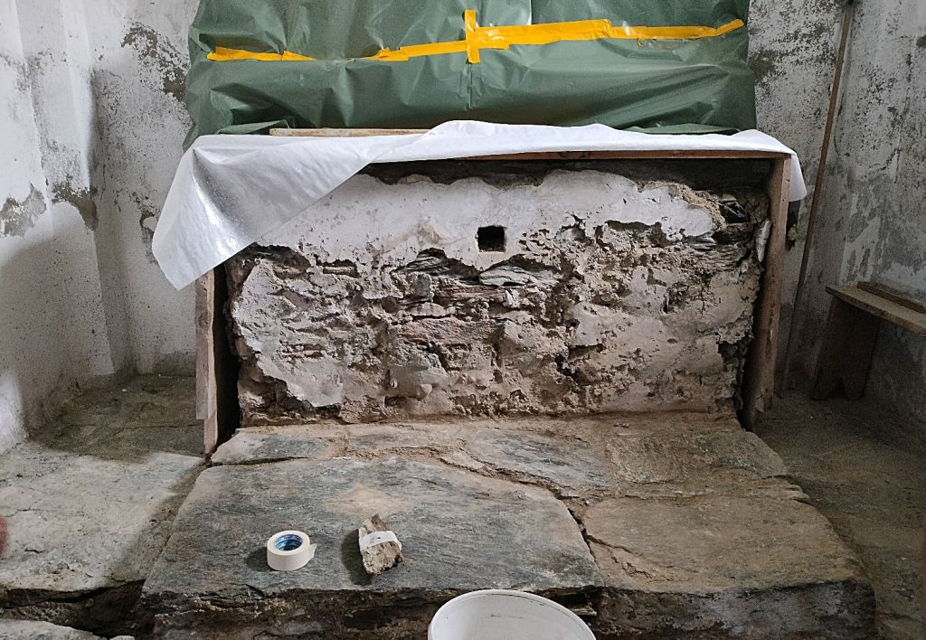 Nei mesi scorsi un dipinto è stato tolto dalla chiesa e portato al laboratorio di Ornella Sterlocchi a Chiavenna per il restauro. Nel frattempo i lavori hanno avuto inizio. In primo luogo è stato effettuato il ripristino del contrafforte.