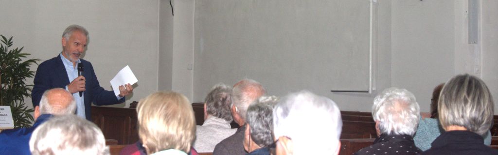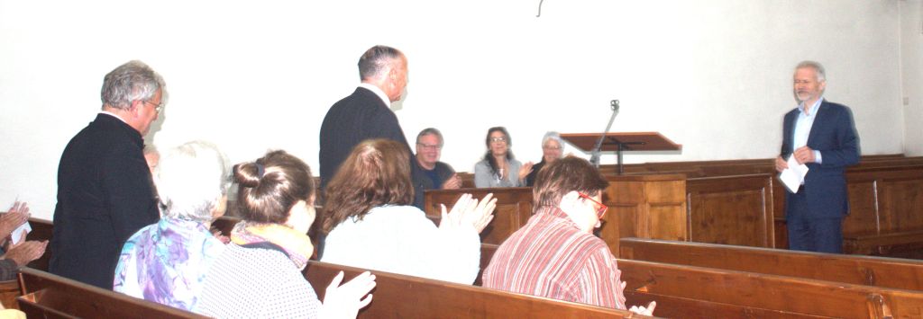 Il padrone di casa, il Pastore Paolo Tognina, ha tracciato, citando dialoghi e aneddoti ricavati dalla sua stessa esperienza di allievo della scuola Magistrale a Coira, un ritratto inedito e umano di Zanetti che, come egli stesso affermava, componeva musica con la gioia nel cuore.