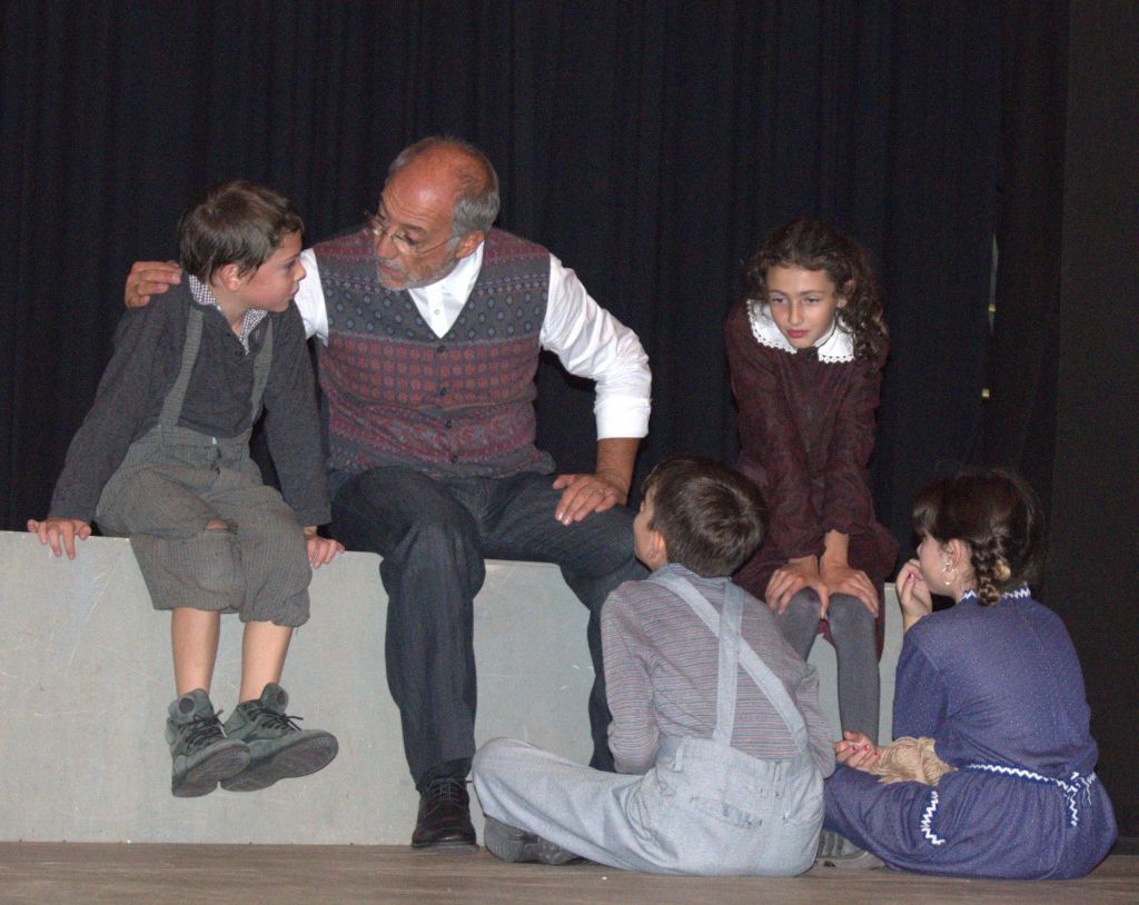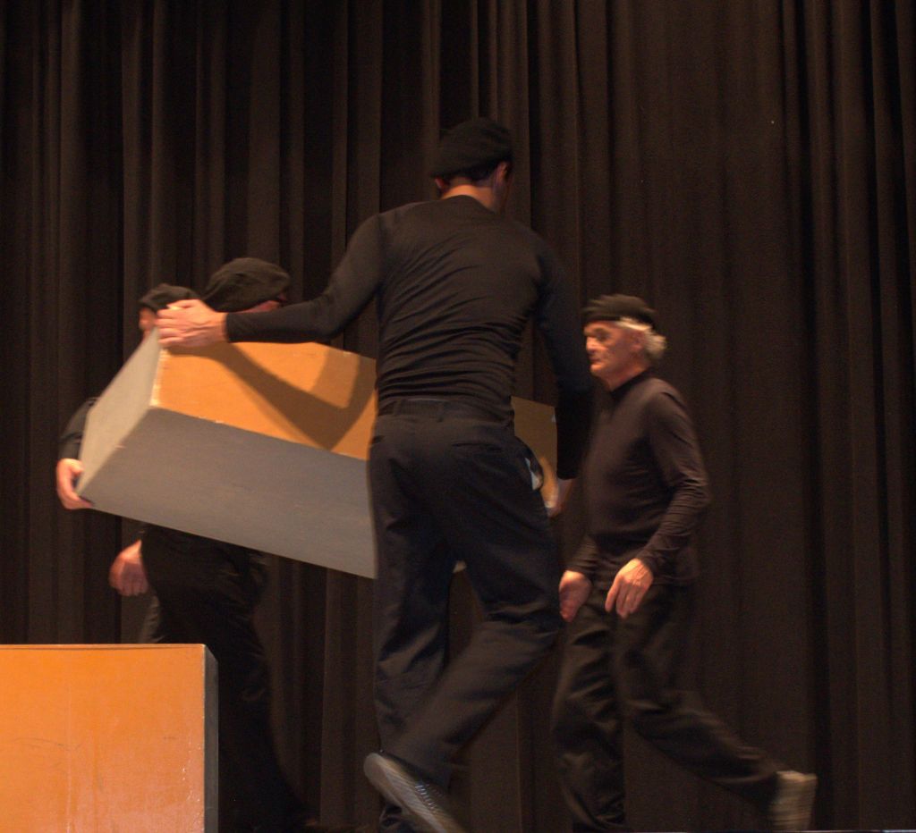 Solo la gestualità dei bravi attori di ogni età, insieme ad una essenziale scenografia e ad una colonna sonora che comprendeva soprattutto brani da E semm partì di Davide Van De Sfross, hanno dato corpo e sostanza ai diversi momenti della vita del protagonista.