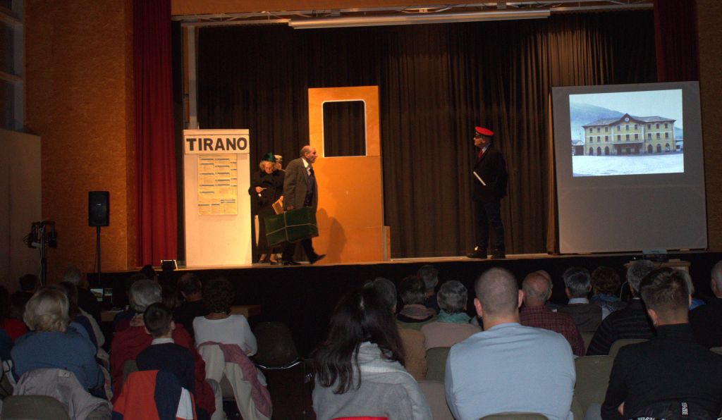 Un interessante filmato iniziale, risultato di un riuscito puzzle fra immagini d’epoca e riprese attuali in costume con un incredibile treno a vapore alla stazione di Tirano, ha contestualizzato la narrazione.