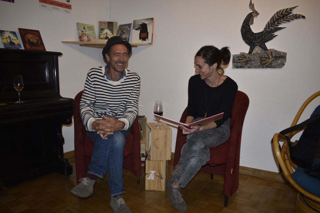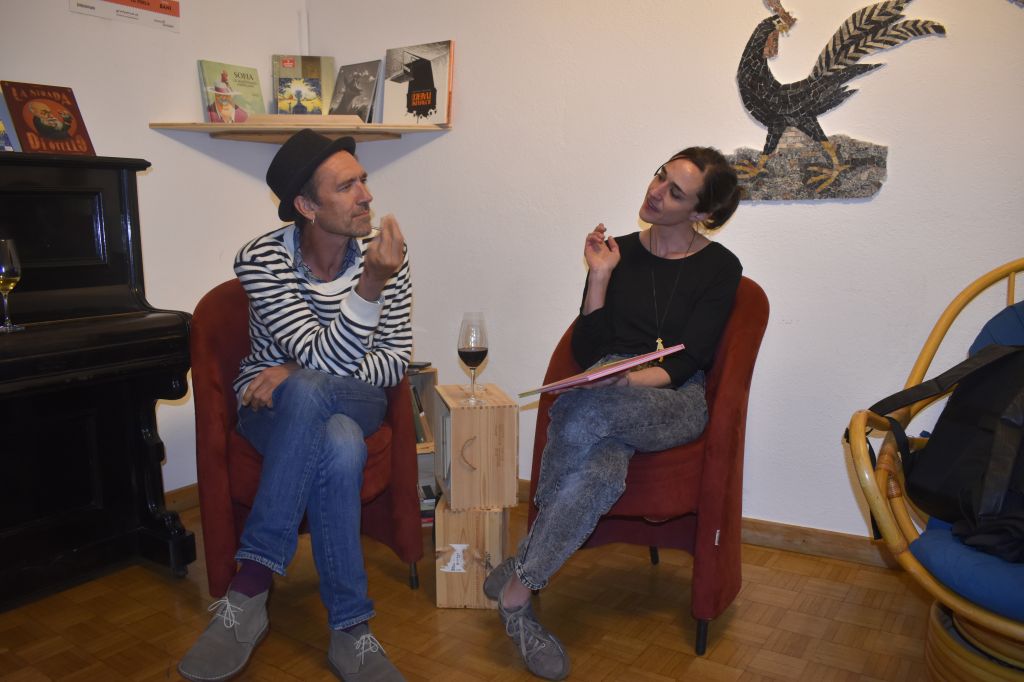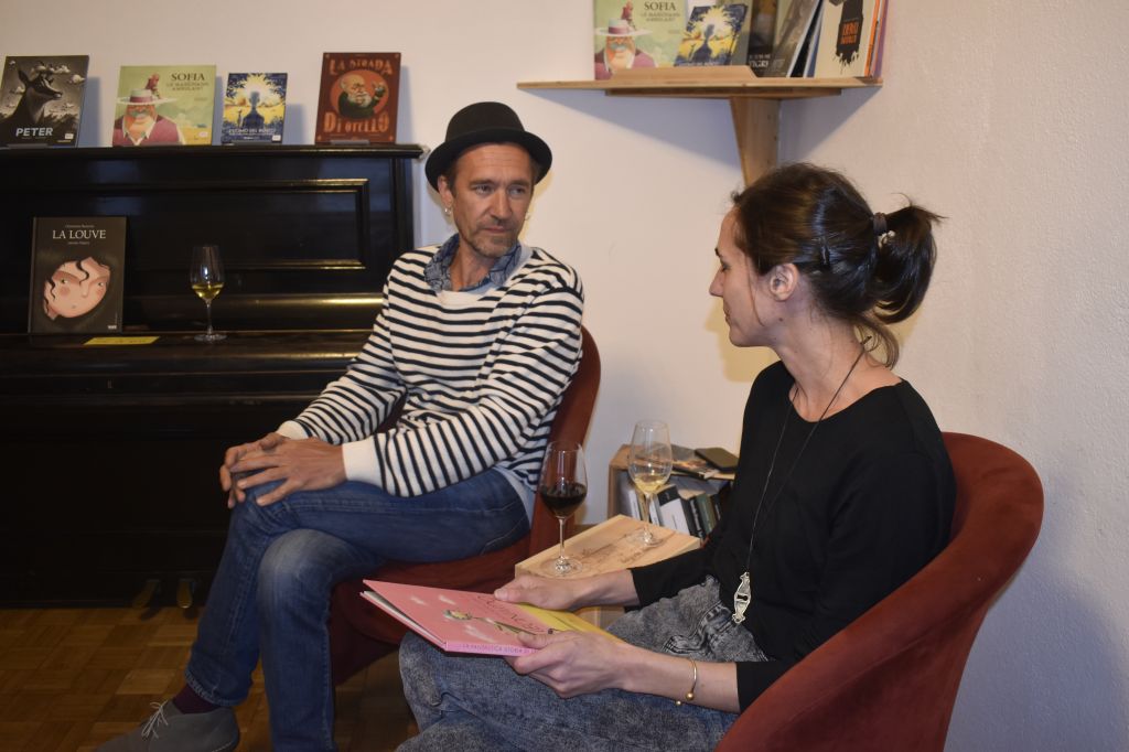 Grazie ad Anna Capelli, che ha saputo offrire le giuste sollecitazioni, e alle interessanti domande poste dal pubblico, venerdì 9 maggio, nello spazio LeggInsem dell’Hotel Suisse, Depréz , nella sua presentazione a Poschiavo, dove rimarrà in residenza per tutto il mese di maggio, ha svelato come nascono i suoi lavori, come funziona la sua professione, quali sono le sue esperienze, quali le tecniche d’elezione, spingendosi a riflessioni sul ruolo dell’illustrazione nell’impianto generale dell’albo.
