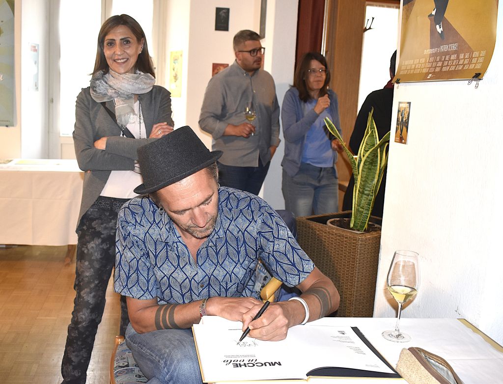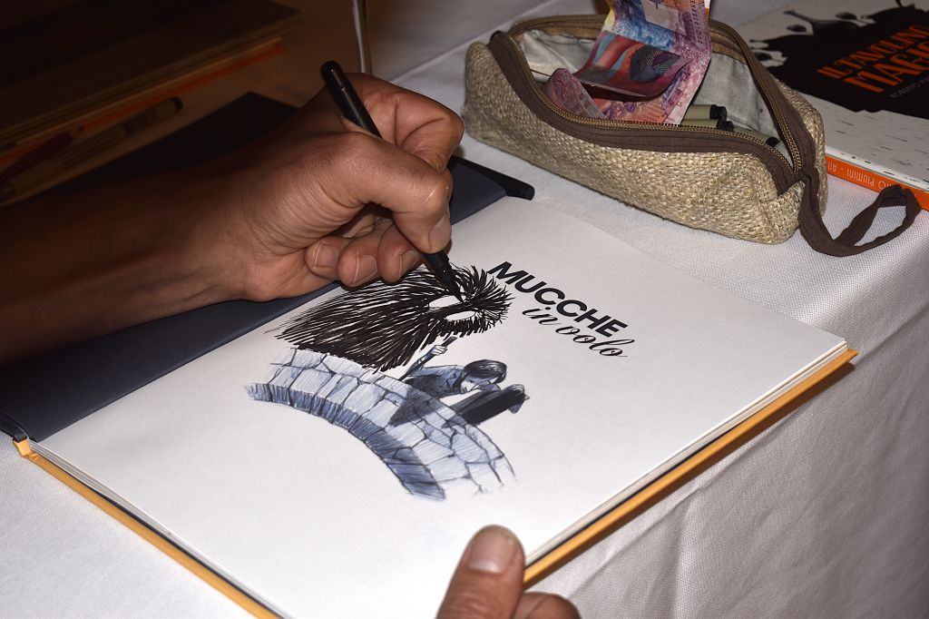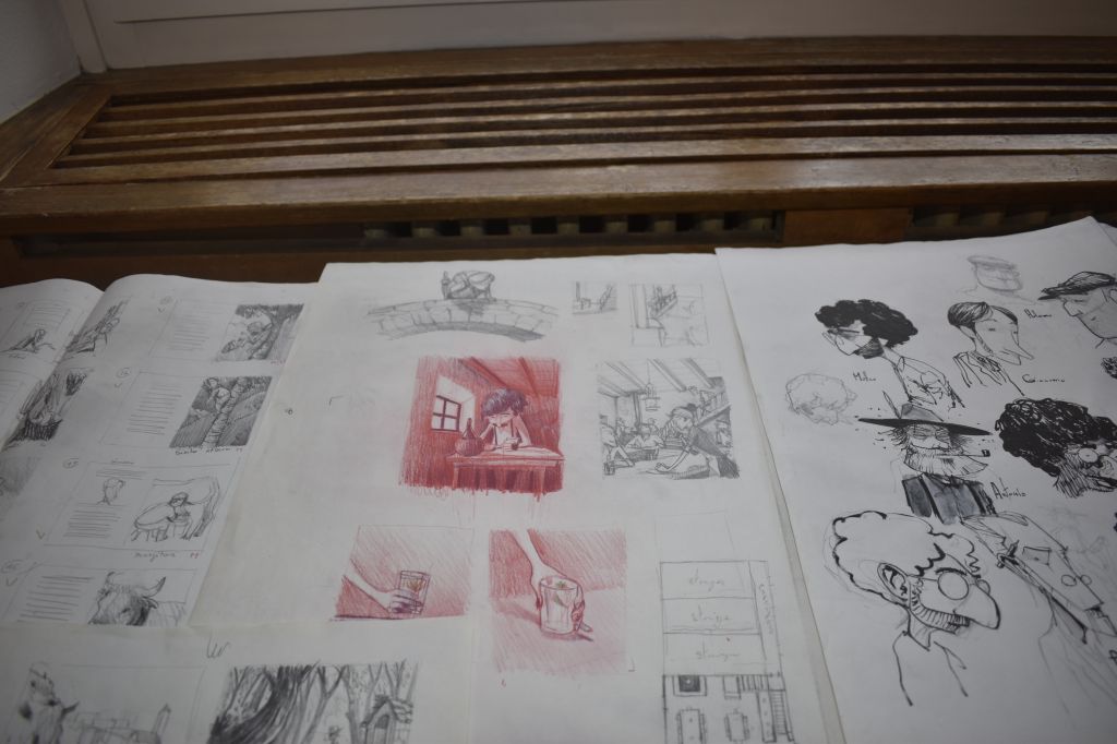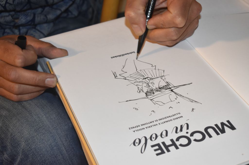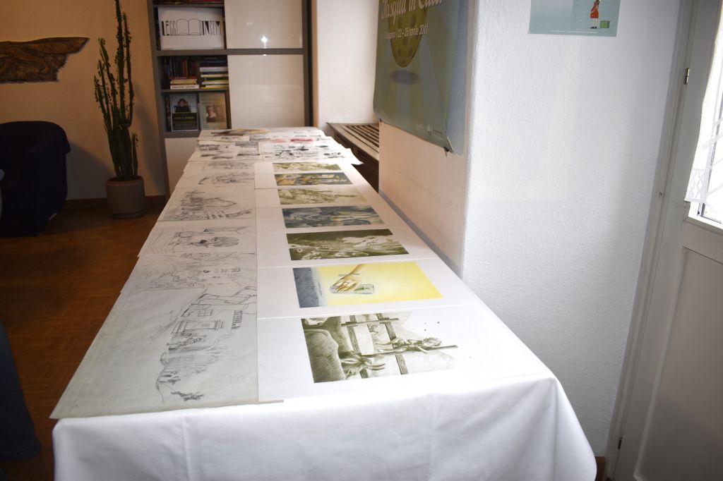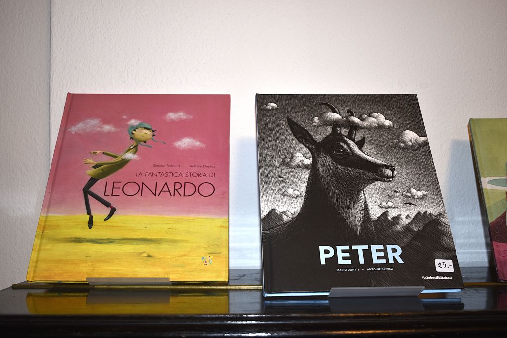 Parte della produzione di Antoine Depréz rimarrà esposta nello spazio Legginsemm al primo piano dell’Hotel Suisse, dove si possono anche acquistare alcuni degli albi, fino al 28 maggio: oltre agli albi illustrati, ci sono manifesti, volantini, depliant, disegni originali e un intero tavolo dedicato ai bozzetti preparatori del bellissimo albo “Mucche in volo”.