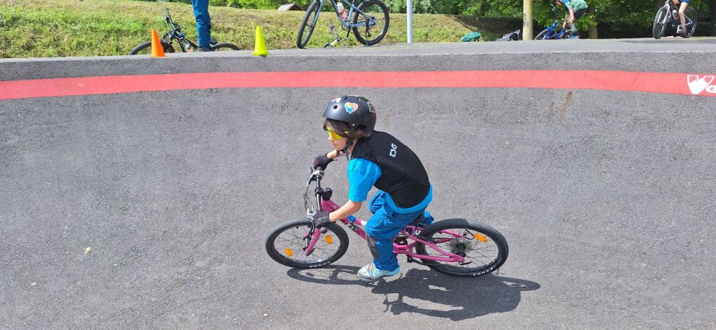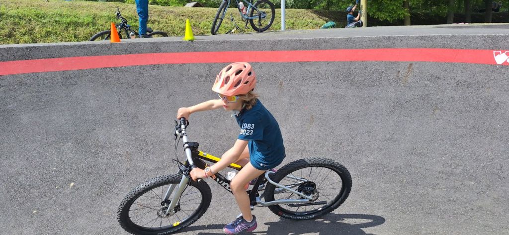 Dopo qualche esercizio di riscaldamento e una prima ricognizione a piedi del tracciato, sotto la guida attenta dei monitori, i giovani biker iniziano a prendere confidenza con le ondulazioni del circuito. Se all’inizio c’era un po’ di incertezza, bastano pochi minuti perché il gruppo cominci a sfrecciare con sempre maggiore sicurezza e grinta.