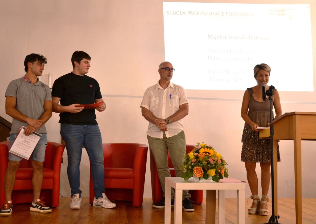 Nel segno del coraggio e della passione, Manuela Kalt-De Monti, coordinatrice di Artigiani e Commercianti Valposchiavo, ha ricordato che il diploma è un inizio: «Il diploma non è un punto di arrivo, ma un biglietto di ingresso verso il viaggio più importante. Costruite con coraggio e passione il vostro futuro. Con tutto il cuore vi auguro di portare nel vostro viaggio professionale e personale questi due grandi valori».