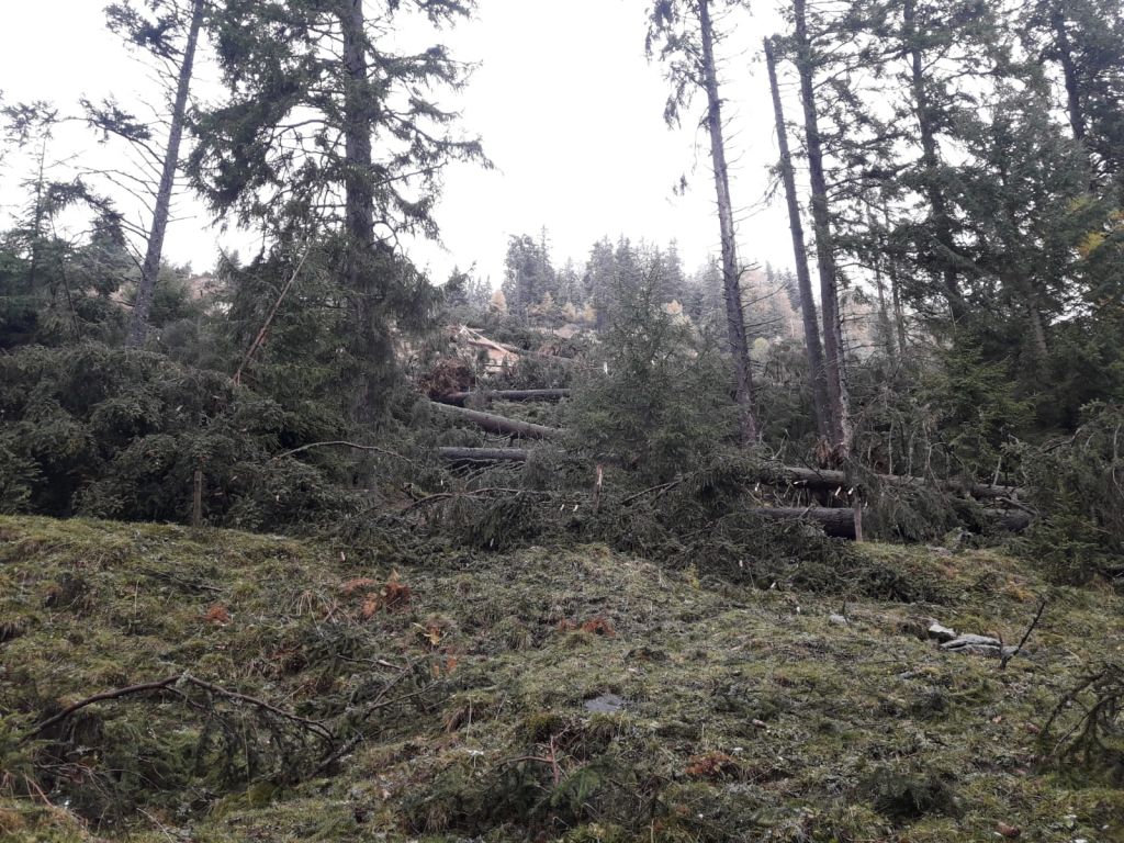 Le forti raffiche di vento provenienti da sud (fenomeno atipico in quanto generalmente il vento proviene da nord) che si sono abbattute sulla Valle ieri sera, lunedì 29 ottobre 2018, hanno causato la caduta di molti alberi.