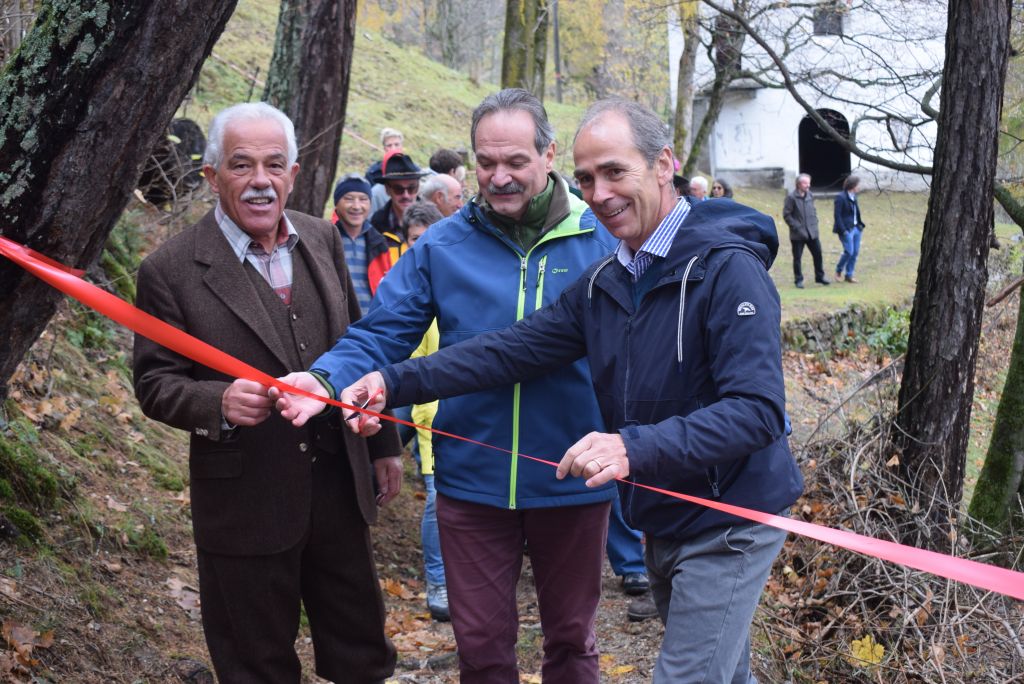 Orlando Lardi, Francesco Gianoli e Fausto Isepponi tagliano il nastro del Sentiero delle leggende