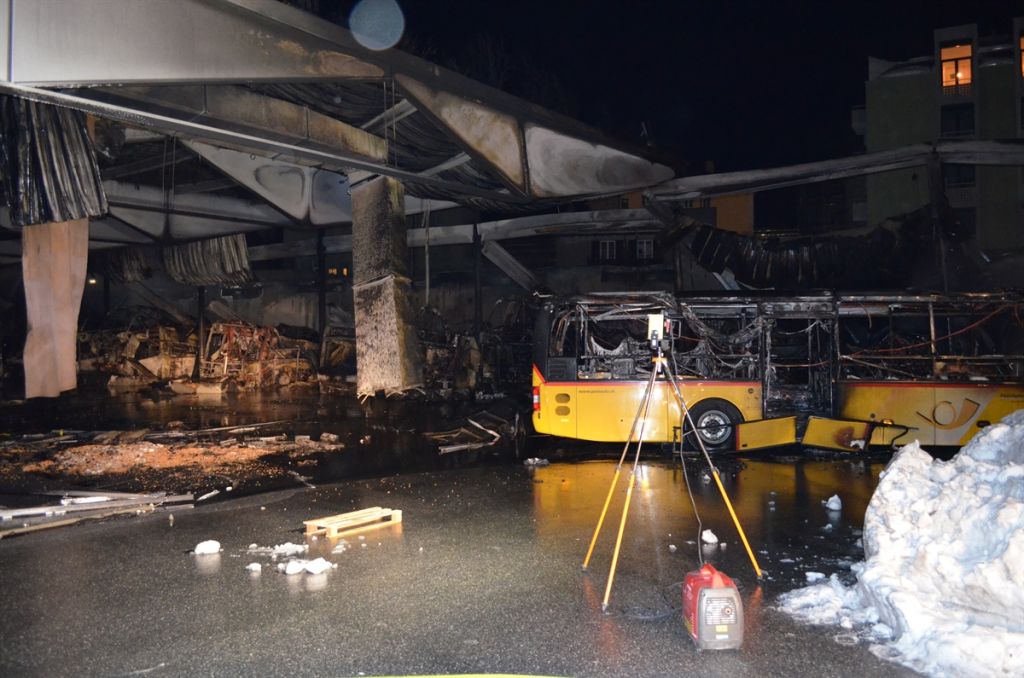 Una ventina di autobus postali operativi, di veicoli in riparazione e mezzi privati di dipendenti posteggiati nell'autorimessa sono bruciati. Le fiamme hanno danneggiato anche veicoli parcheggiati nelle vicinanze. È stata aperta un'inchiesta per chiarire le cause del rogo.