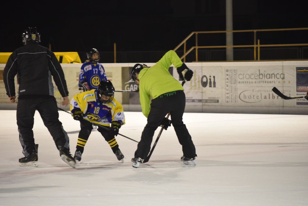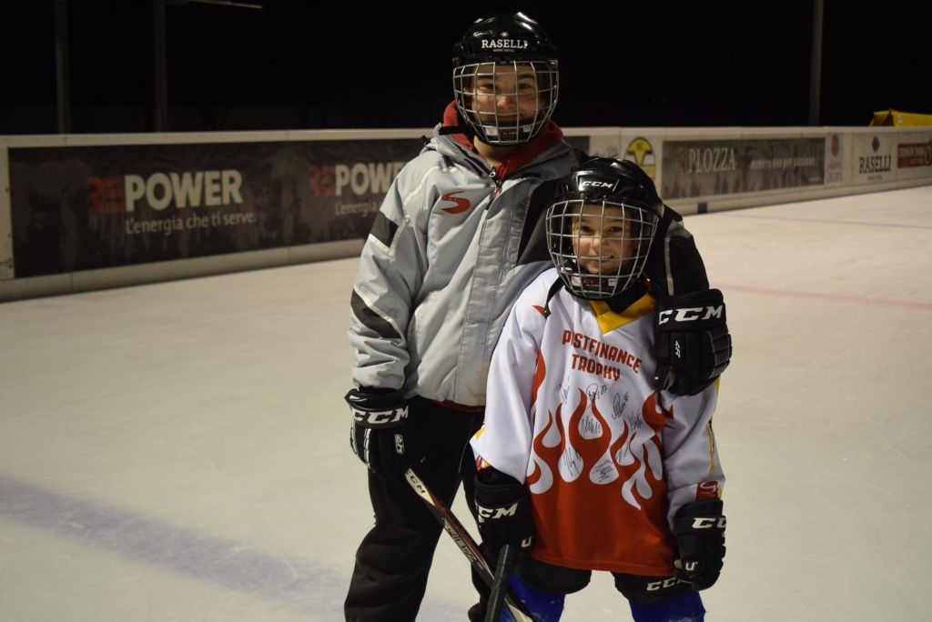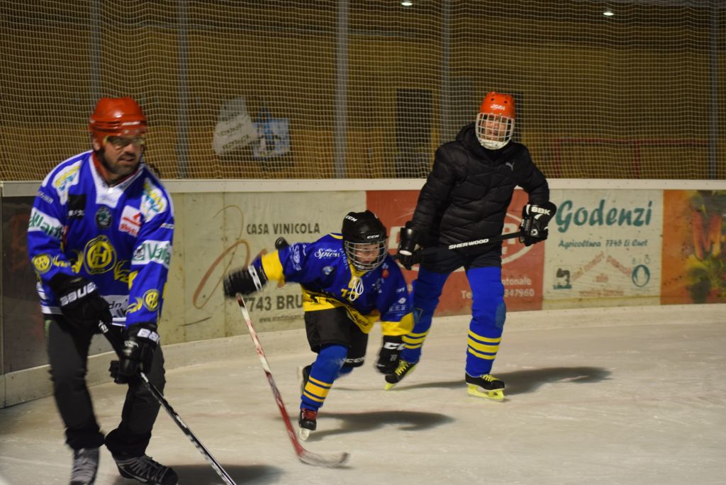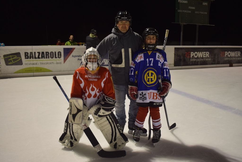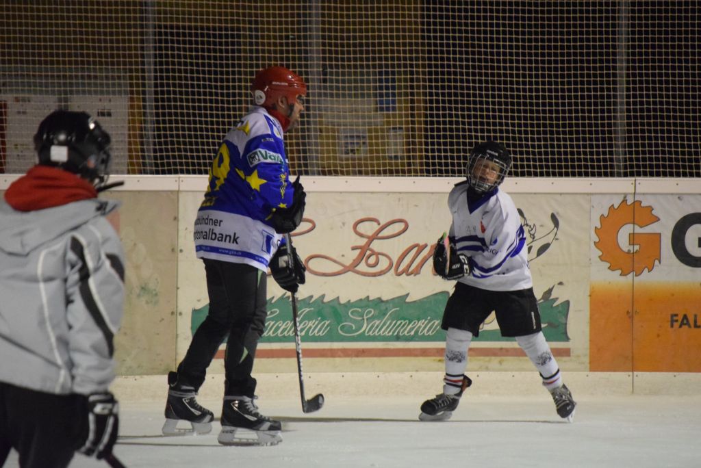 Risate e tanto divertimento, ma anche tanta voglia di battere i rispettivi genitori ieri sera presso il campo di Ghiaccio di Le Prese nell'attesissima sfida bambini-genitori. In campo non solo i papà, ma anche molte le mamme e fratelli, che hanno dimostrato di saperci fare con il bastone da hockey contro i loro forti HCpini Piccolo U10. Era sì un incontro amichevole, ma sotto sotto nessuno ci teneva a perdere. La sfida è stata vinta dai Piccolo U10 per 5 seri a 4. A fine gare, per far felici sia i vincitori che i perdenti, le gentili mamme avevano preparato a bordo pista una merenda per tutti.