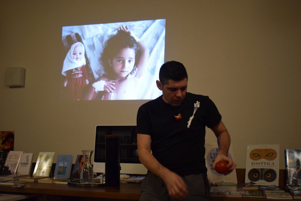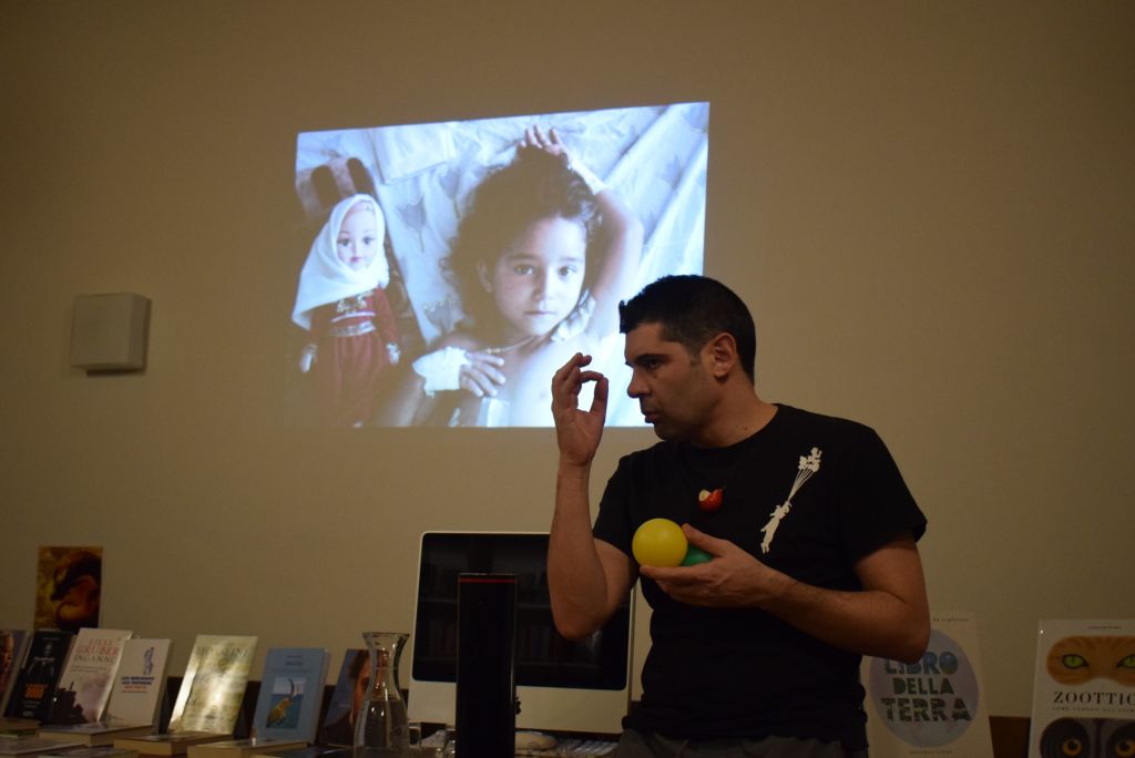 Ma come possono coesistere queste due parole, guerra e sorriso, in un' unica frase, nella stessa situazione, addosso a una sola persona? Tutto questo è stato spiegato, mercoledì sera, da Marco Rodora, detto il "Pimpa", durante un'intervista pubblica che ha suscitato non poche emozioni e riflessioni e alla quale hanno aderito diverse persone. La serata era organizzata da Josy Battaglia (storievaganti.com) in collaborazione con la biblio.ludo.teca La sorgente di Poschiavo. Marco Rodari è stato capace di portarci nei luoghi del Medio Oriente, martoriati dalla guerra. Attraverso le sue parole, i presenti hanno potuto vivere e in parte capire quali sono le emozioni e le dinamiche umane che si provano sotto le bombe. Girare il mondo "armato" di naso rosso. Per far sorridere il cielo, dove cadono bombe e lacrime. Questa è la missione che il "Claun il Pimpa" porta ovunque sia andata smarrita la gioia dei bimbi. Grazie al suo cappellino ad elica e ad un pizzico di magia, la fantasia riprende il suo volo e per un attimo tutto è felice! A chi gli chiede "Chi te lo fa fare?", risponde con faccia sorpresa: "Il sorriso di un bambino vale una vita!".
