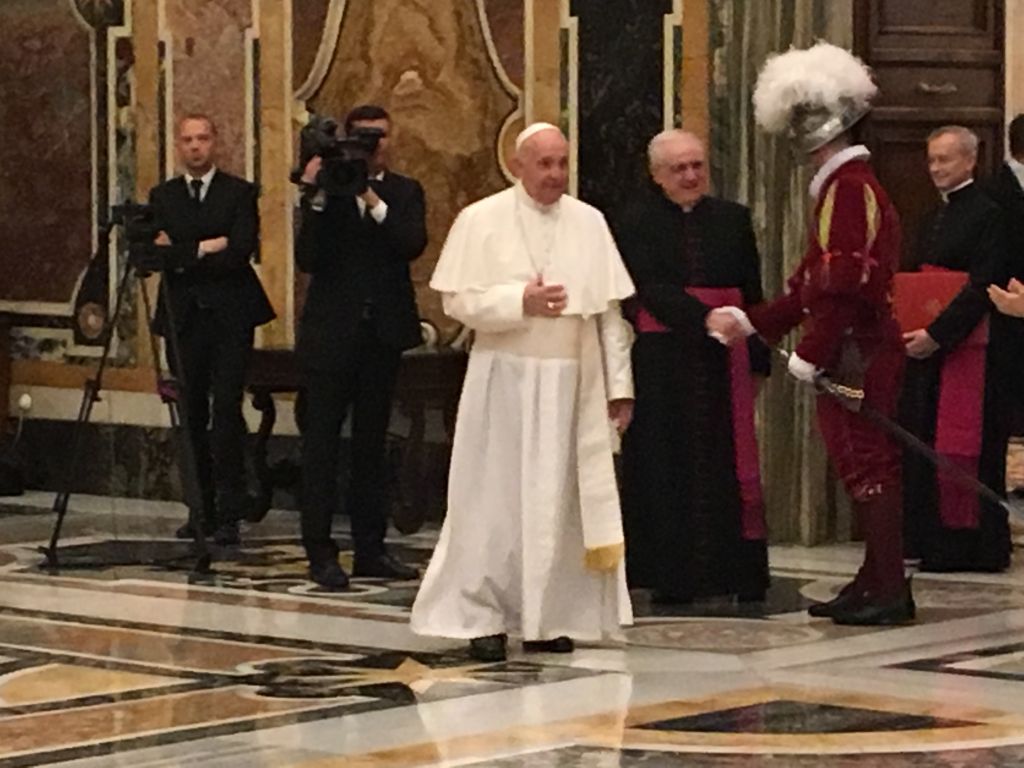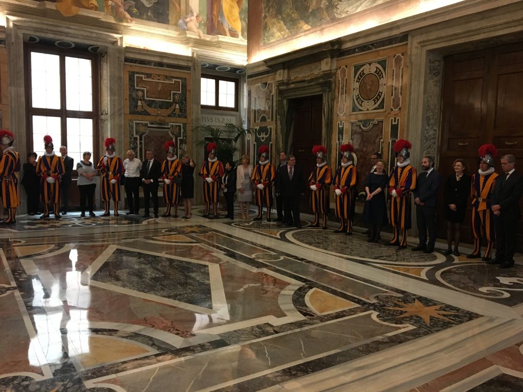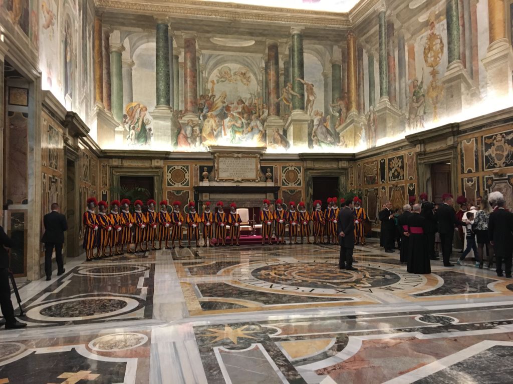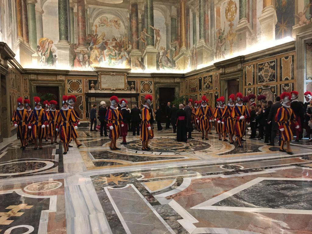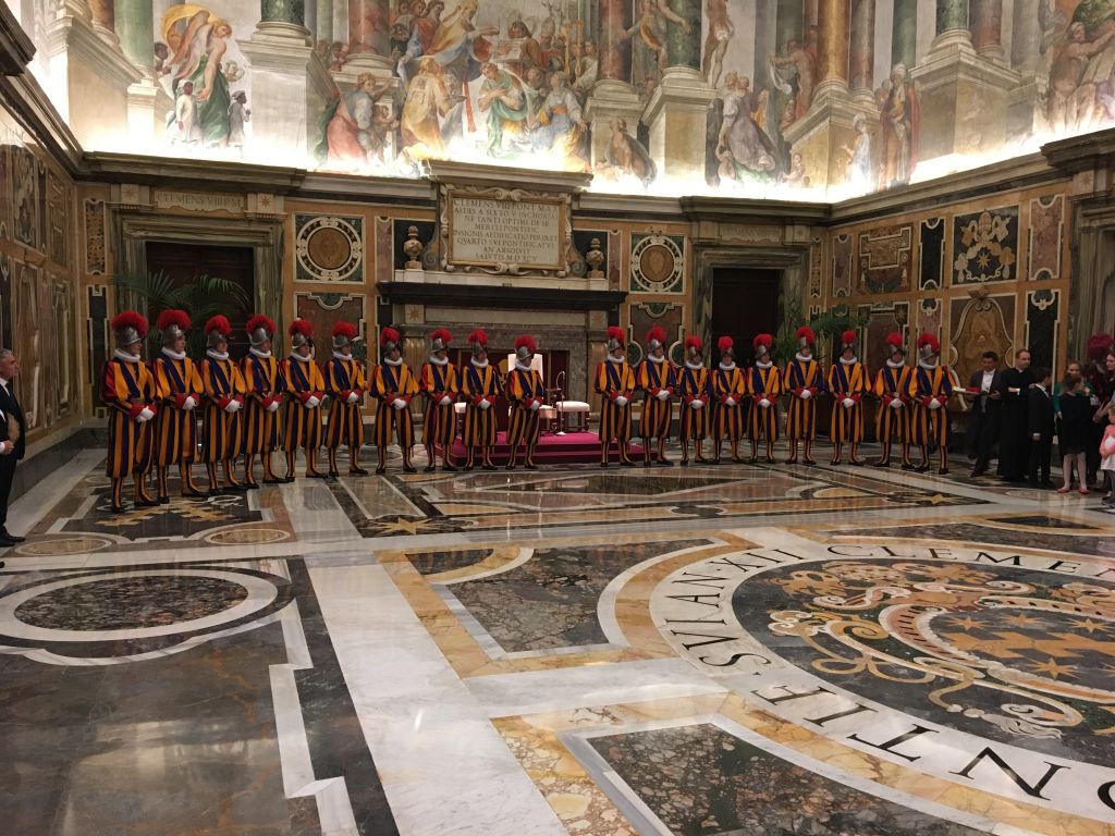 Questa mattina (sabato 4 maggio 2019) nella Sala Clementina del Palazzo Apostolico Vaticano, il Santo Padre Papa Francesco ha ricevuto in Udienza il Corpo della Guardia Svizzera in occasione del giuramento delle nuove reclute (che si svolge come da tradizione il 6 di maggio) accompagnate dai famigliari. Ecco alcune immagini del suggestivo incontro.