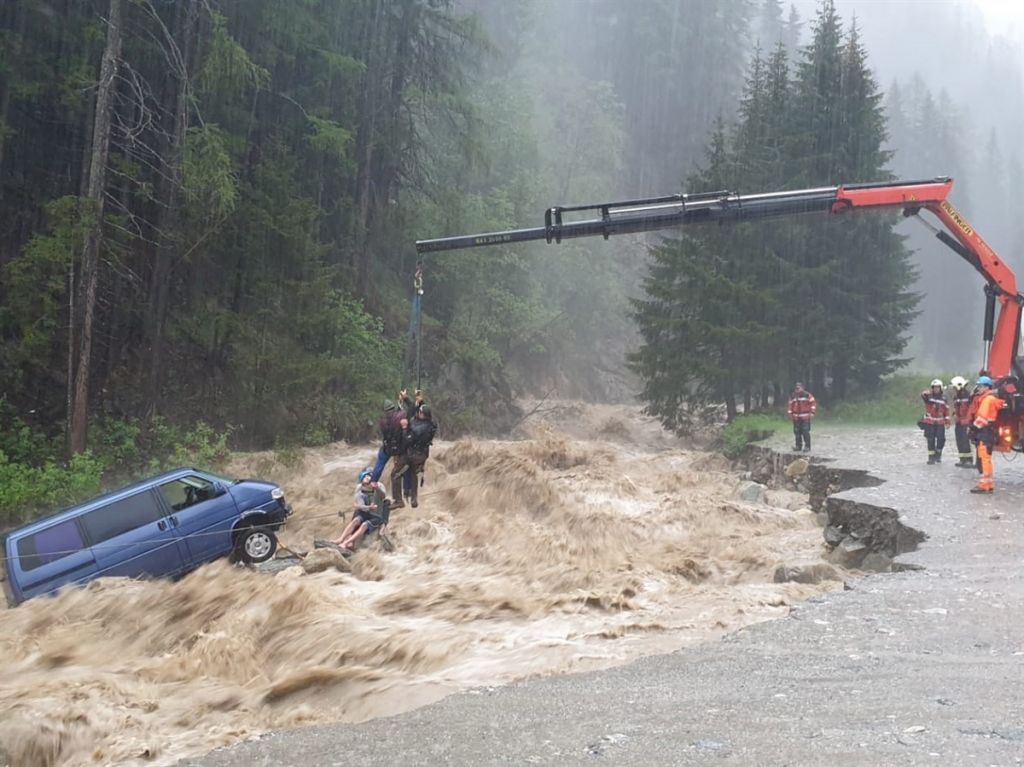 Tra le 22 di martedì sera e le 9 di mercoledì mattina sono state 15 le chiamate di soccorso a seguito delle forti precipitazioni pervenute alla Centrale operativa della Polizia cantonale dei Grigioni. In diverse parti del Cantone i pompieri e altre organizzazioni di salvataggio e di soccorso sono in servizio permanente per ripristinare la situazione e per prevenire ulteriori danni. Particolarmente colpite dai nubifragi sono le regioni della Mesolcina e della Valle del Reno superiore. A Splügen nella zona del parcheggio superiore degli impianti di risalita un’auto è stata travolta dal torrente Hüscherabach in piena. I due occupanti, a parte lievi sintomi di ipotermia, sono rimasti illesi e tratti in salvo con una gru. Evacuati in via provvisionale due famiglie a Cama e gli abitanti di una casa a Medels. Pure messo in salvo il bestiame da una stalla attigua.