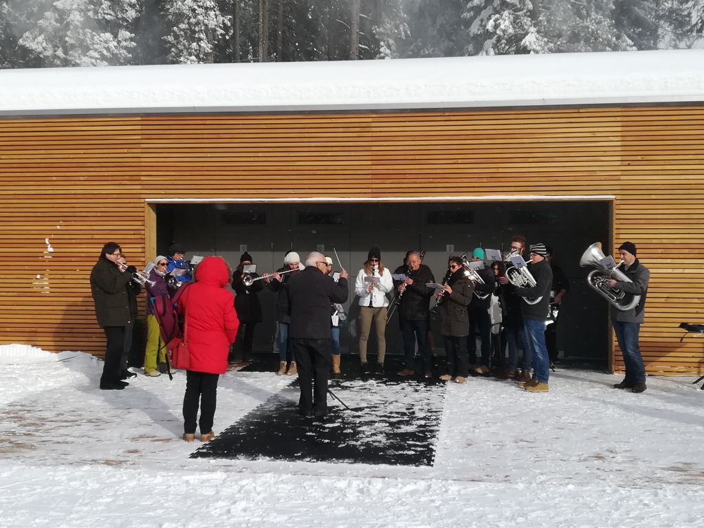 La bandella di Mesocco ha allietato tutti con i suoni allegri degli strumenti ed i visitatori hanno potuto apprezzare ed anche visitare la nuova costruzione. Il pur capiente locale del nuovo ristorante non bastava a contenere tutti. Ma anche fuori, nonostante il freddo ed i fiocchi di neve svolazzanti, il clima umano era sereno e allegro.