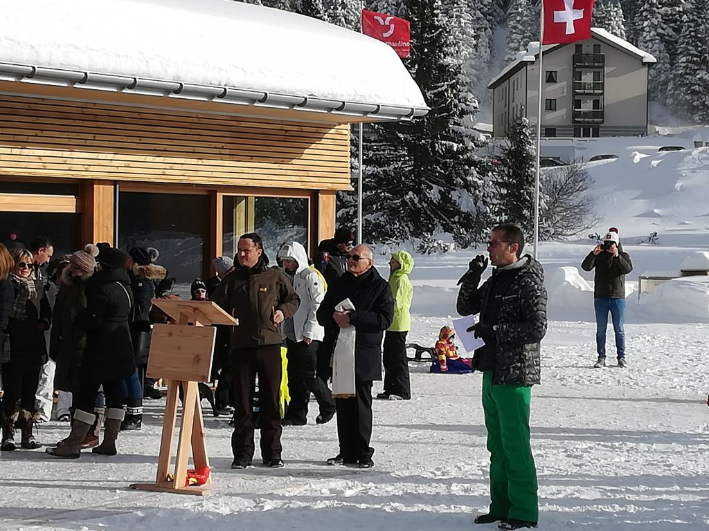 Il direttore dell’ente turistico, Christian Vigne, ha presentato al microfono il programma della giornata, comprendente il discorso del sindaco, la benedizione, il taglio del nastro e le buone vivande da mangiare assieme. Nel suo discorso iniziale il Sindaco ha sottolineato l’importanza della sfida che il comune intende lanciare nel tempo a venire, sottolineando l’impegno profuso già negli anni scorsi. La speranza è grande che San Bernardino possa tornare ad essere il luogo privilegiato per le diverse discipline sportive invernali ed estive che lo hanno contraddistinto da sempre. Questo è l’auspicio di tutti, e anche nella benedizione sono state espresse parole di speranza forte per il futuro della nostra bella località alpina. Tutti coloro che lo desideravano hanno potuto visitare gli ampi e luminosi locali e rendersi conto di persona della bontà dell’opera.