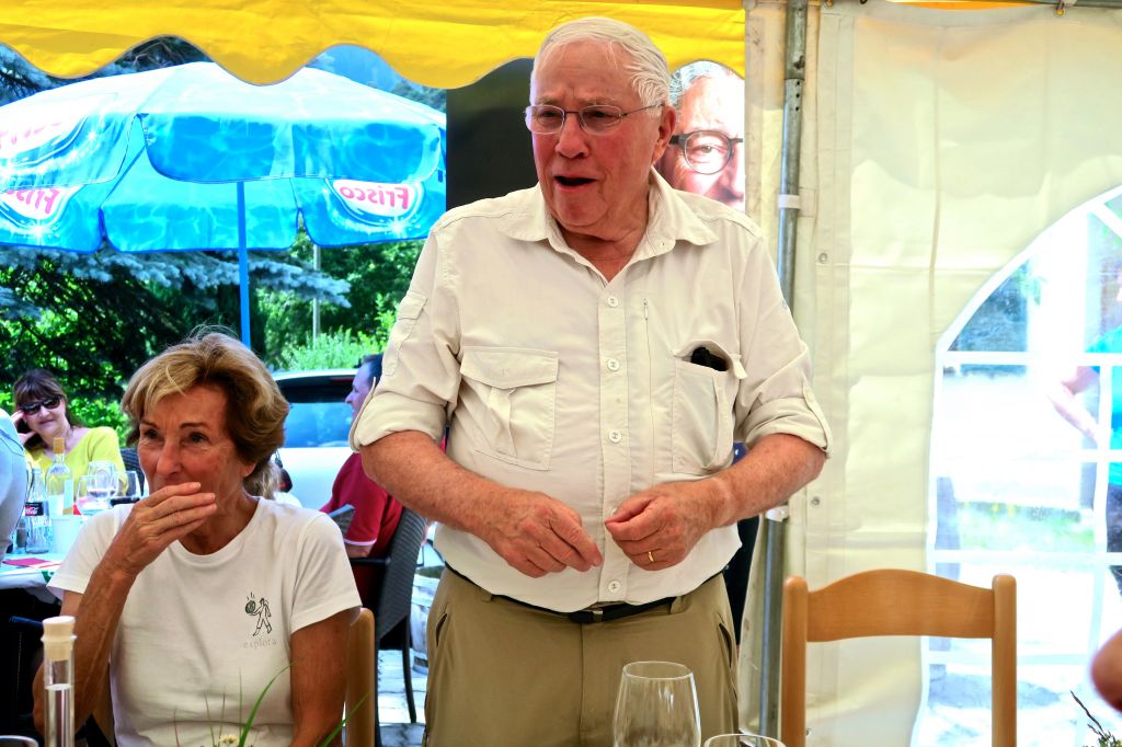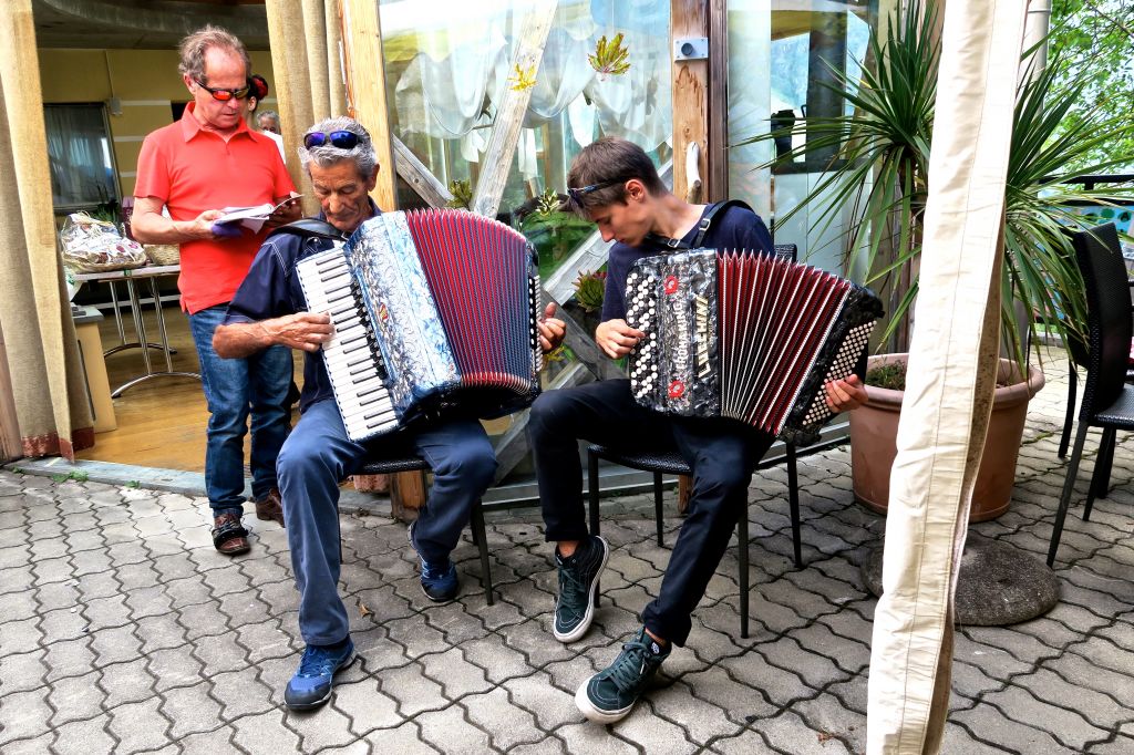 La festa è iniziata con una camminata, per quelli che ce la facevano, dall’Hotel Le Prese a Miralago, dove è stato offerto un aperitivo con gustosi stuzzichini. Qui ho avuto personalmente una lunga e interessante discussione politica con la consigliera nazionale Magdalena Martullo-Blocher, più tardi con l’aggiunta di Delio Iseppi. La Consigliera nazionale ci ha informato su molteplici argomenti che riguardano l’Accordo quadro con l’UE e le valutazioni negative di esperti. Al termine dell’aperitivo la comitiva è ripartita a piedi per raggiungere Miravalle.