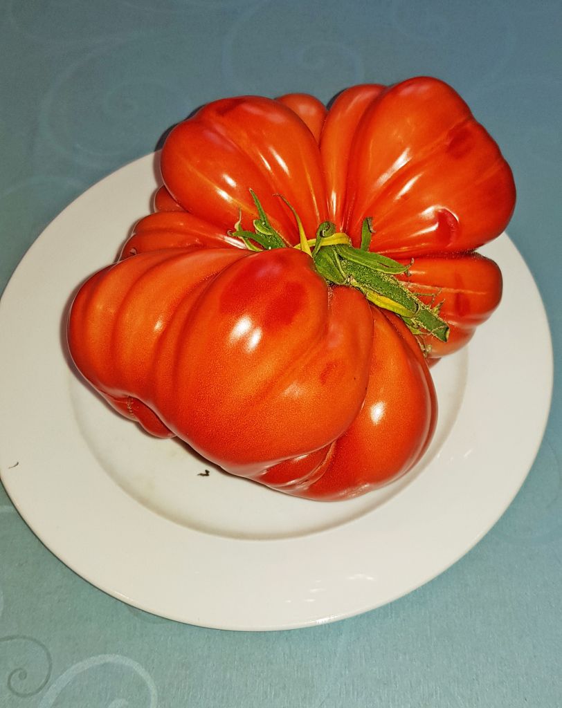 Questo pomodoro è stato raccolto una settimana fa dalla famiglia Cavallari nel suo orto agli Amianti (Poschiavo). Il pomodoro pesa circa 1.260 kg.