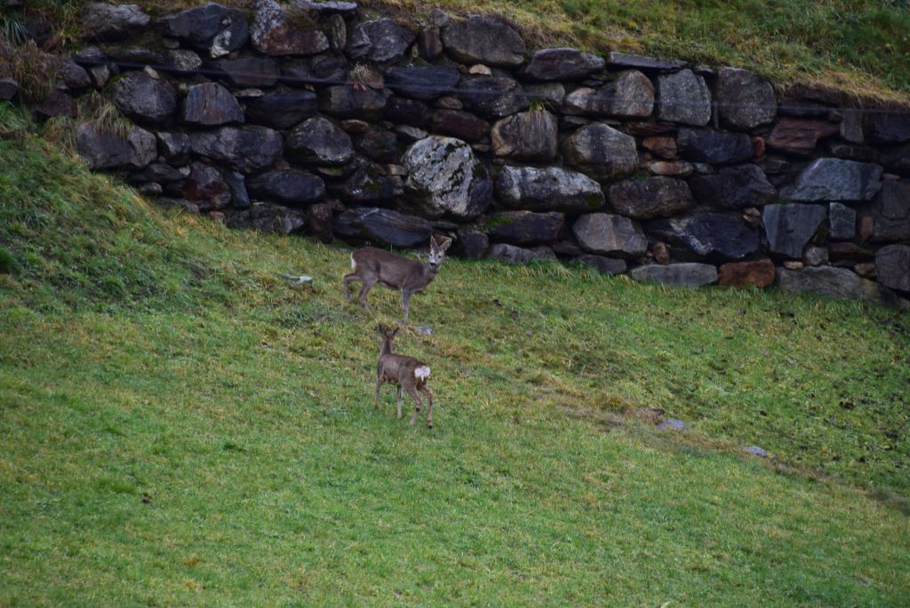 In alta quota è scesa molta neve. Due caprioli hanno deciso di approfittarne dove la coltre nevosa non è ancora arrivata.