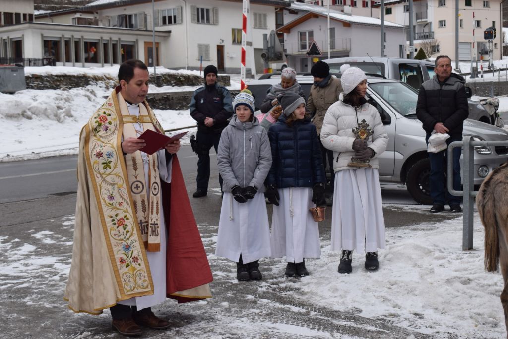 Nonostante il freddo pungente e la bufera causata del vento da nord, sono state molte le persone che oggi, mercoledì 17 gennaio 2018, in occasione della festa liturgica di Sant'Antonio Abate hanno partecipato prima alla Santa Messa nella chiesa di Sant'Antonio celebrata da don Ippolito, e poi alla tradizionale “benedizione degli animali” impartita sul piazzale del Bar Piz.