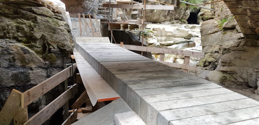 Jürg Conzett e Romeo Lardi spiegano come stanno procedendo i lavori di realizzazione dell’Orrido di Cavaglia. A conclusione anche una breve intervista con i proprietari e gestori del neonato Ristorante Cavaglia.