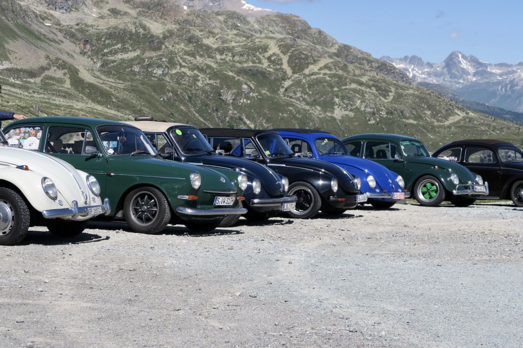 Arrivato in loco sabato mattina ho potuto constatare con i miei occhi il grande impegno che hanno avuto tutti i componenti del gruppo di questa ospitante e allegra festa. Tutt’attorno all’Ospizio Bernina, a dritta e a manca, brulicava di maggiolini; uno straordinario pastello di colori e modelli. Ho fatto un giro completo perché avevo brama di trovarne uno vecchio con il doppio vetro posteriore. Non l’ho trovato. Poi arriva improvvisamente un «Käfer» nero proveniente dalla Bregaglia; modello 1948 con il motore originale, lunotto posteriore separato in due parti, frecce direzionali con apertura laterale e il tipico semplice cruscotto. Una meravigliosa tecnica dei tempi passati!