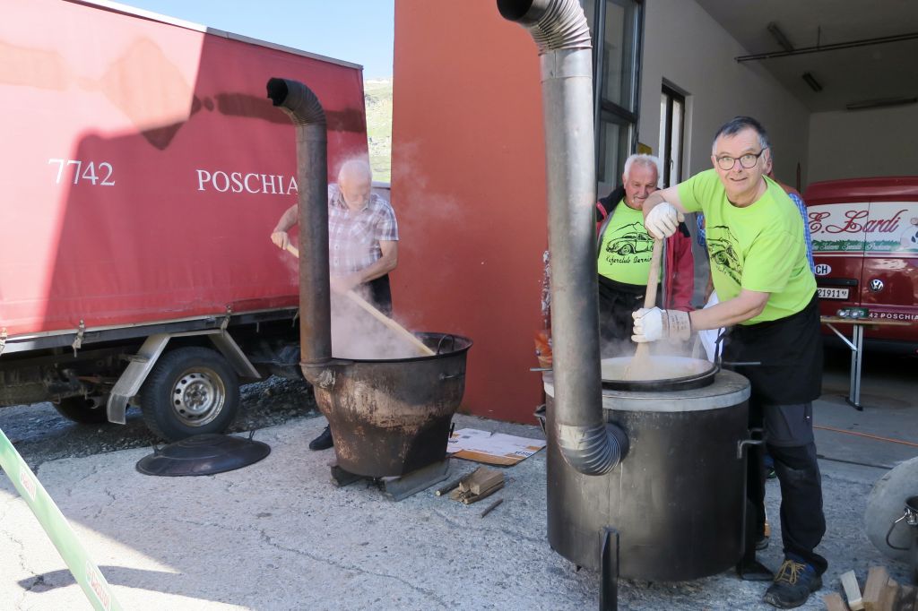 Sono state tre giornate di festa al culmine del Passo del Bernina. Sono infatti iniziate venerdì 9 e terminate domenica 11 luglio 2021. Il centro dei festeggiamenti è stato sicuramente sabato, in particolare nella preparazione del pranzo, composto da polenta e luganighe fresche o grigliate. Ne hanno servite poco meno di duecento! Un impegno non indifferente, specialmente per i «tara pulenta», sia nella preparazione che nel servizio, la cui molla proviene dalla passione per quello che in italiano viene chiamato Maggiolino, ma che, tradotto dal tedesco «Käfer», dovrebbe avere il nome di Scarabeo. La manifestazione denominata «Raduno di maggiolini più alto d’Europa» è stata organizzata dal «Käferclub Bernina».