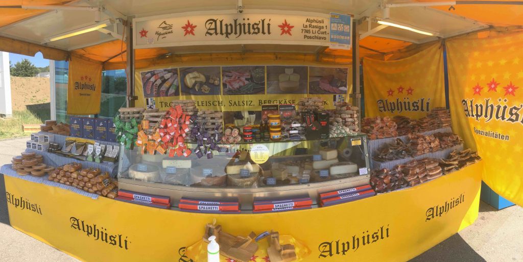 Forse ci hai conosciuto in una fiera o in un’esposizione. Dal 2005, data di fondazione di Alphüsli, abbiamo instancabilmente portato le specialità grigionesi in tutti gli angoli della Svizzera con i nostri caratteristici stand gialli. Per il 2021, siamo stati nominati dall’Aiuto alla montagna per il conferimento del Prix Montagne 2021. L’obiettivo è quello di onorare le aziende che portano il loro valore aggiunto alle regioni montane. Oltre al premio assegnato dalla giuria, uno dei sei candidati vincerà anche il premio del pubblico. Vota il tuo preferito fino al 19 agosto a questo link: https://www.prixmontagne.ch/publikumspreis. Come ogni candidato, siamo naturalmente felici di ogni voto e come al solito continueremo a vendere pasticcini, formaggio e carne secca.