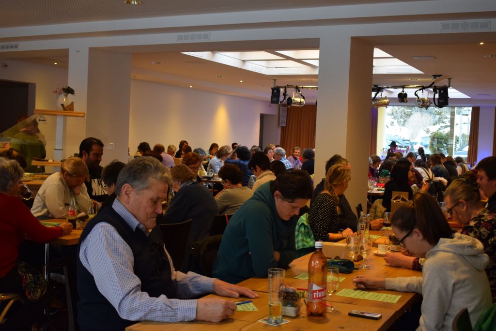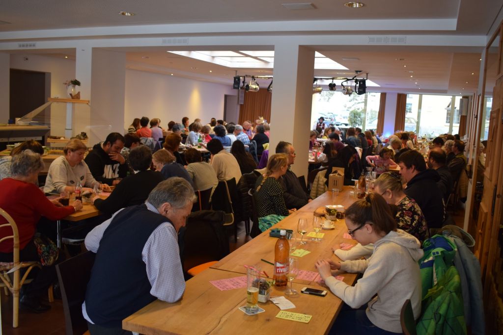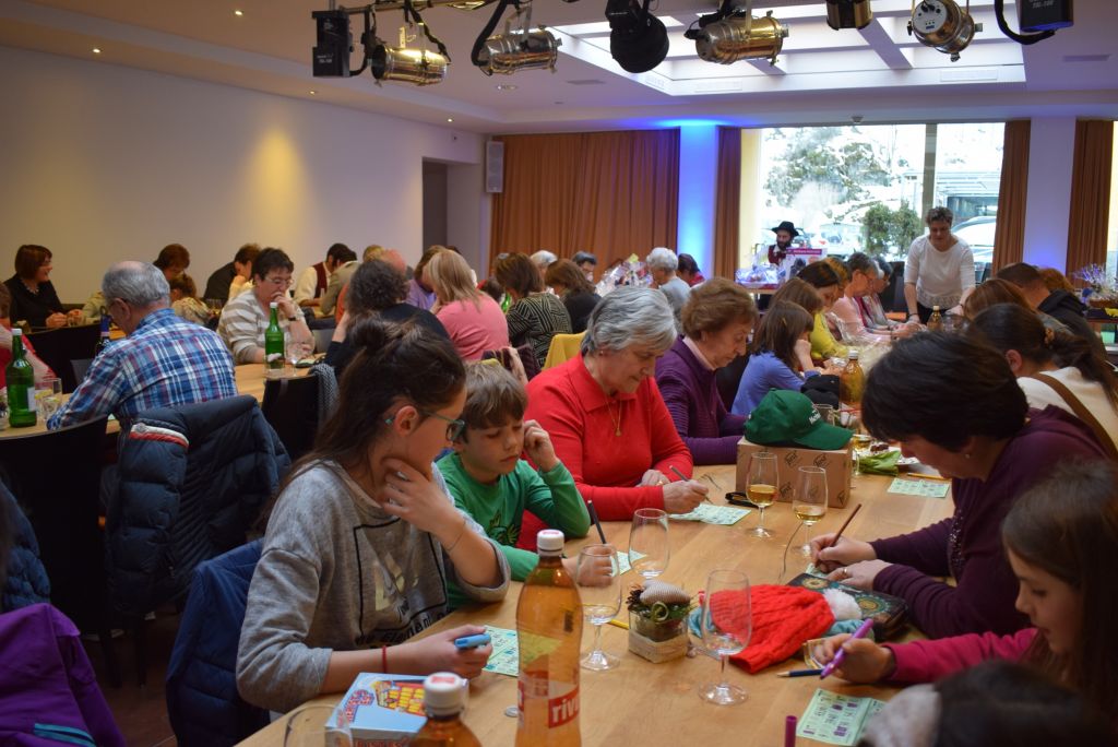 L’inizio del Tombolone organizzato presso l’Hotel La Romantica a Le Prese era fissato per le 14.00. In un batter d’occhio la sala si è riempita di gente.