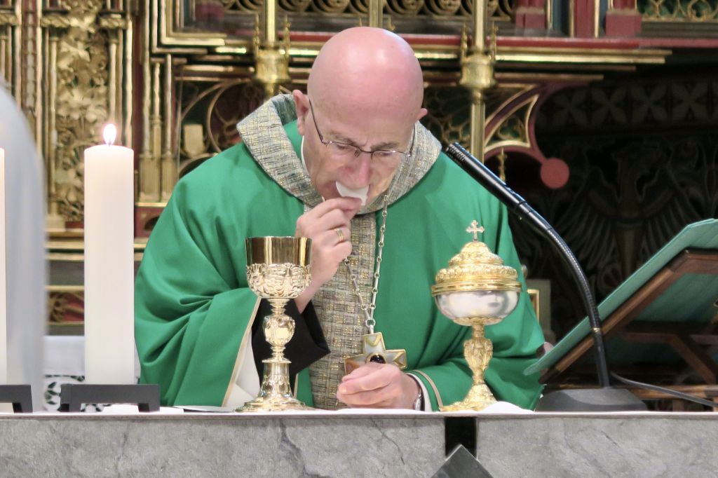 Al termine della stessa monsignor Bonnemain ha incontrato la gente sul sagrato e in seguito nella sala grande del centro parrocchiale, dove c’era l’aperitivo. In questa occasione i fedeli hanno avuto l’opportunità di parlare apertamente con il nostro Vescovo diocesano, il quale era disponibile per tutti indistintamente. Una persona veramente affabile, trasparente, sincera e aperta. Più tardi gli ho fatto osservare che a forza di stringere mani, potrebbe avere conseguenze fisiche alla sua mano. Mi ha risposto con un sorriso: sono abituato a questo e altro.