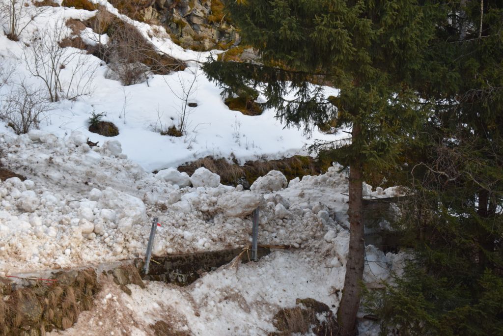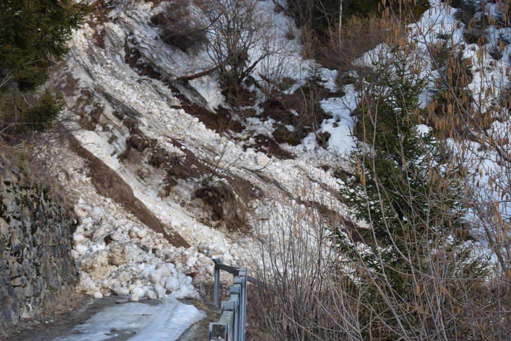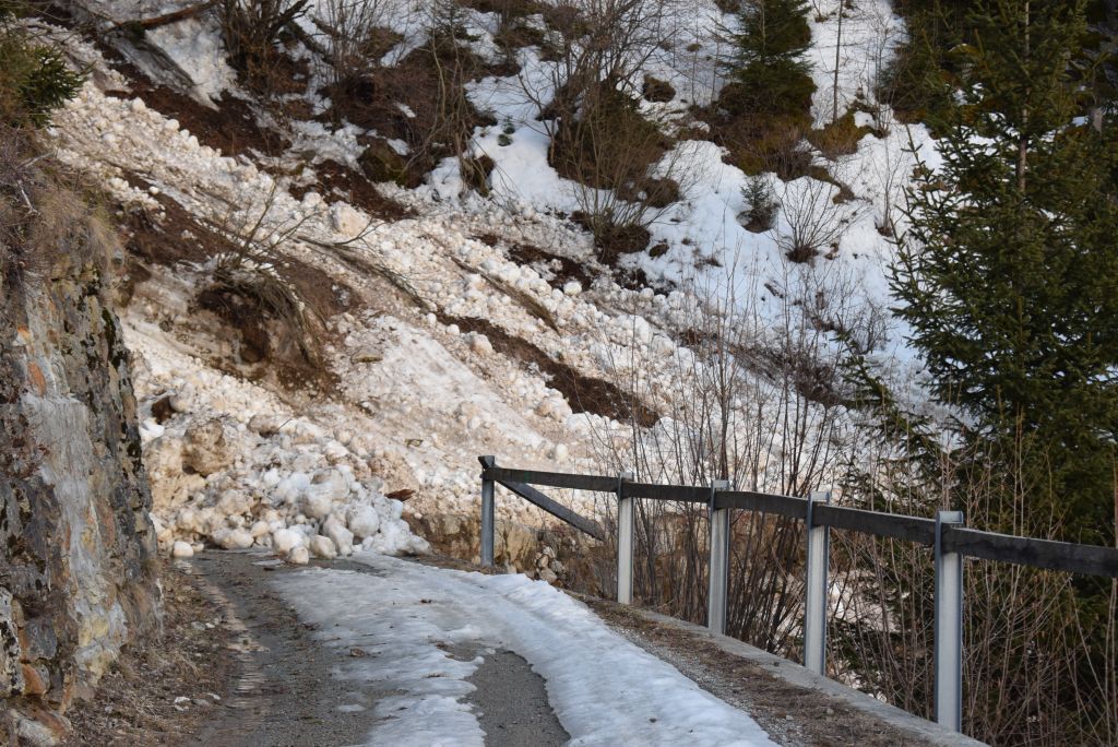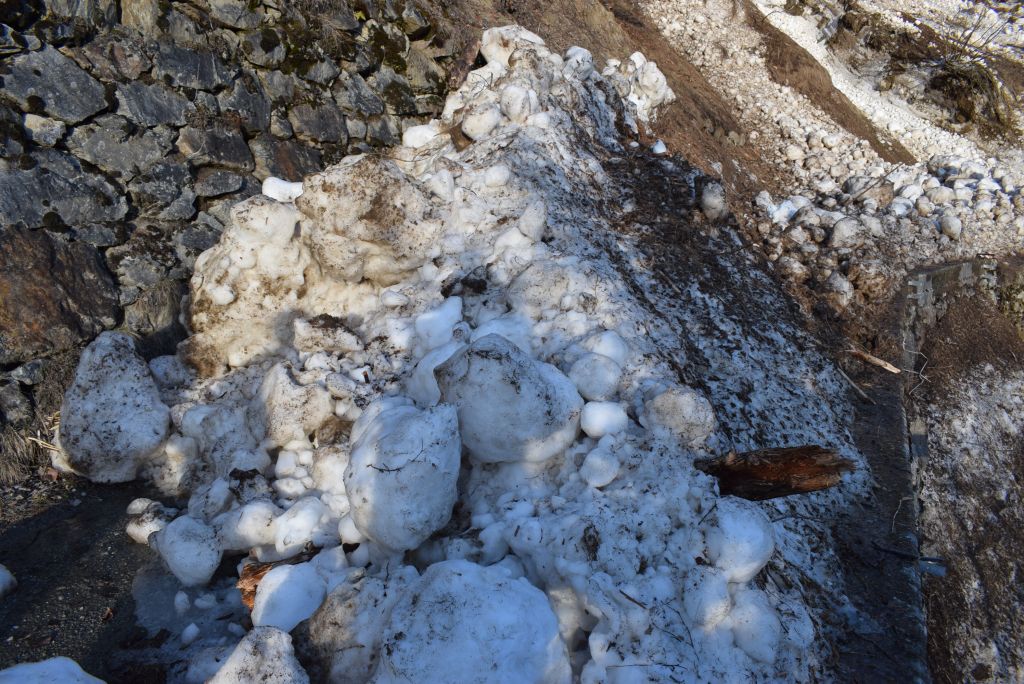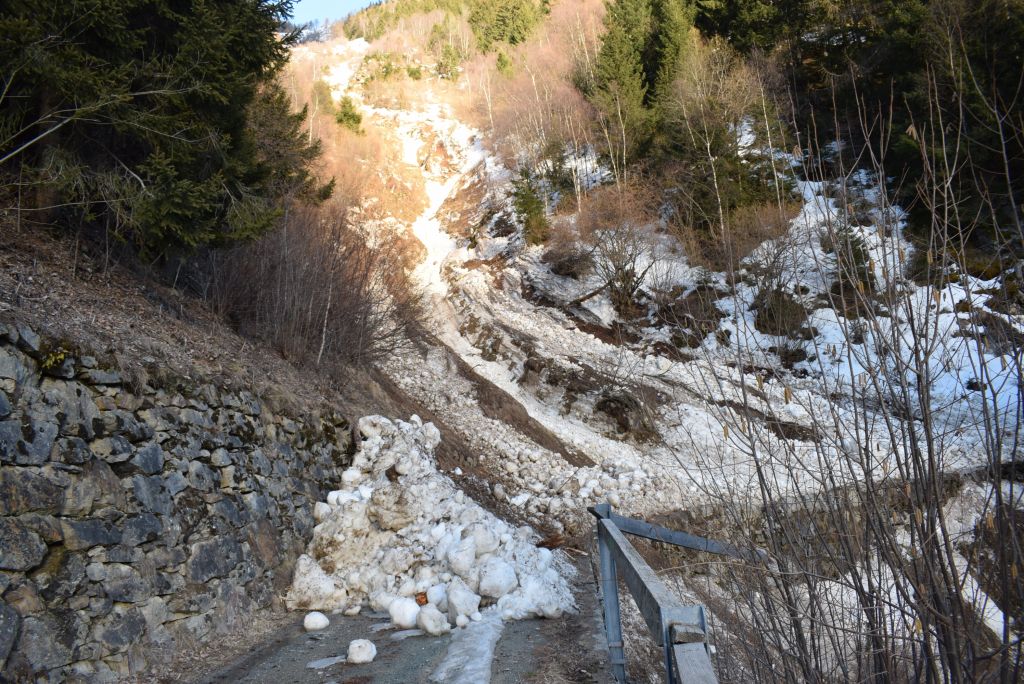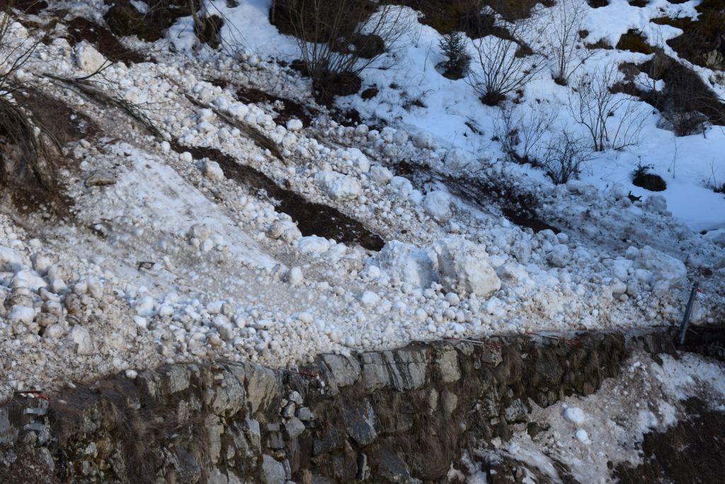 La valanga ha ostruito la strada poco dopo la zona "al Castel"