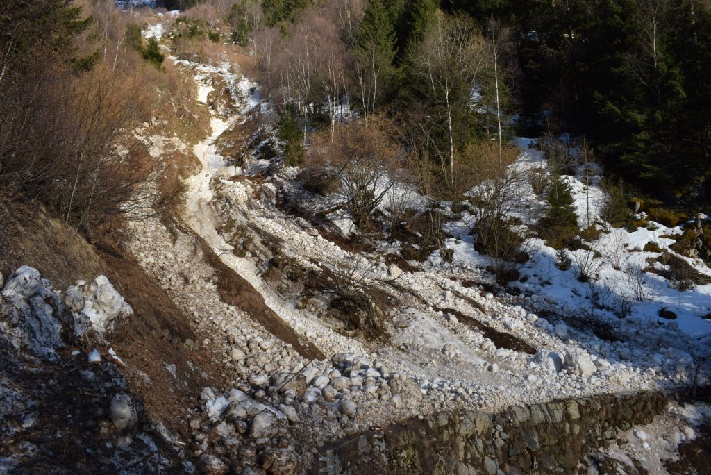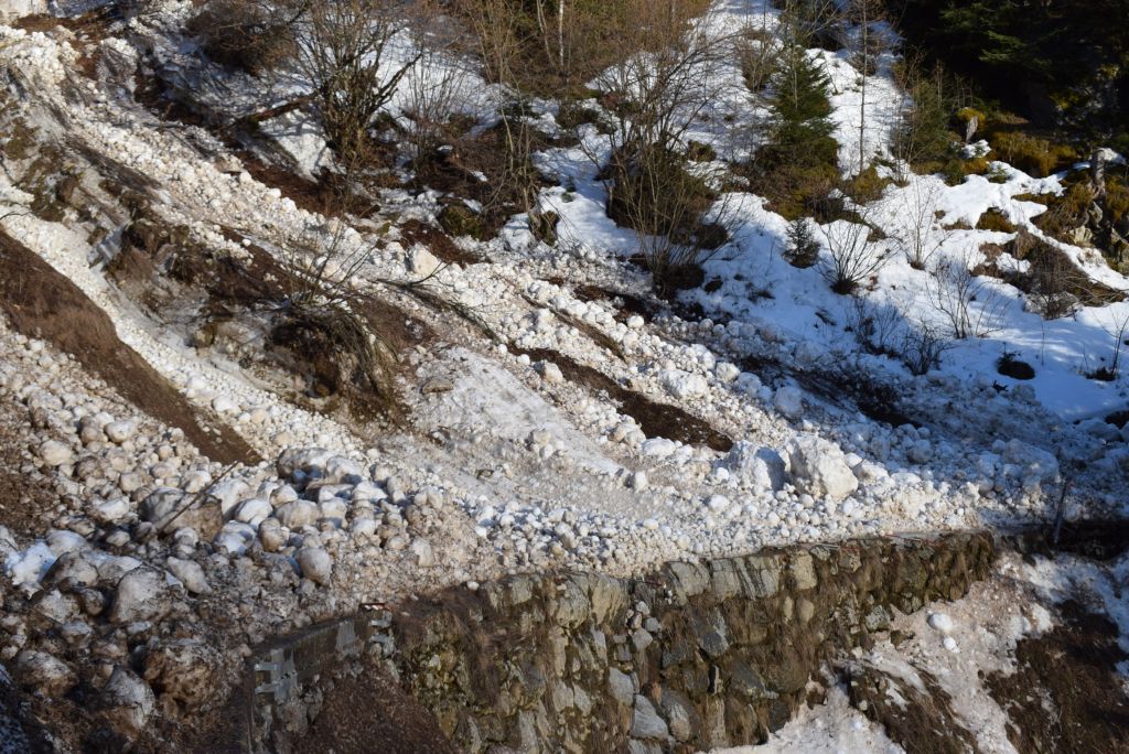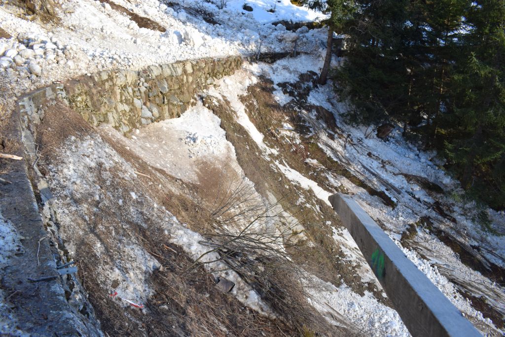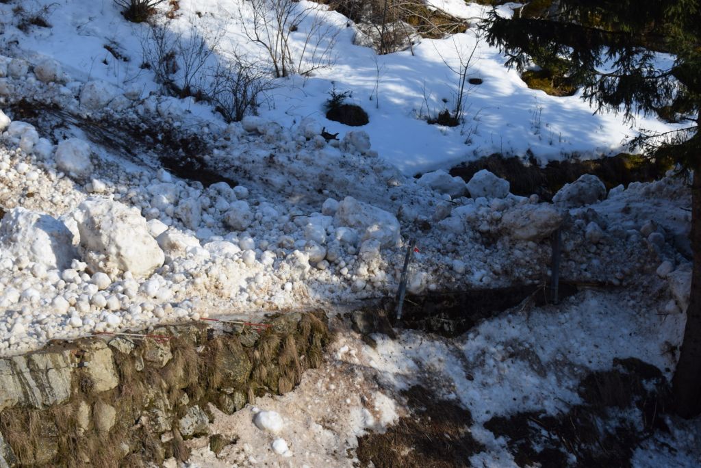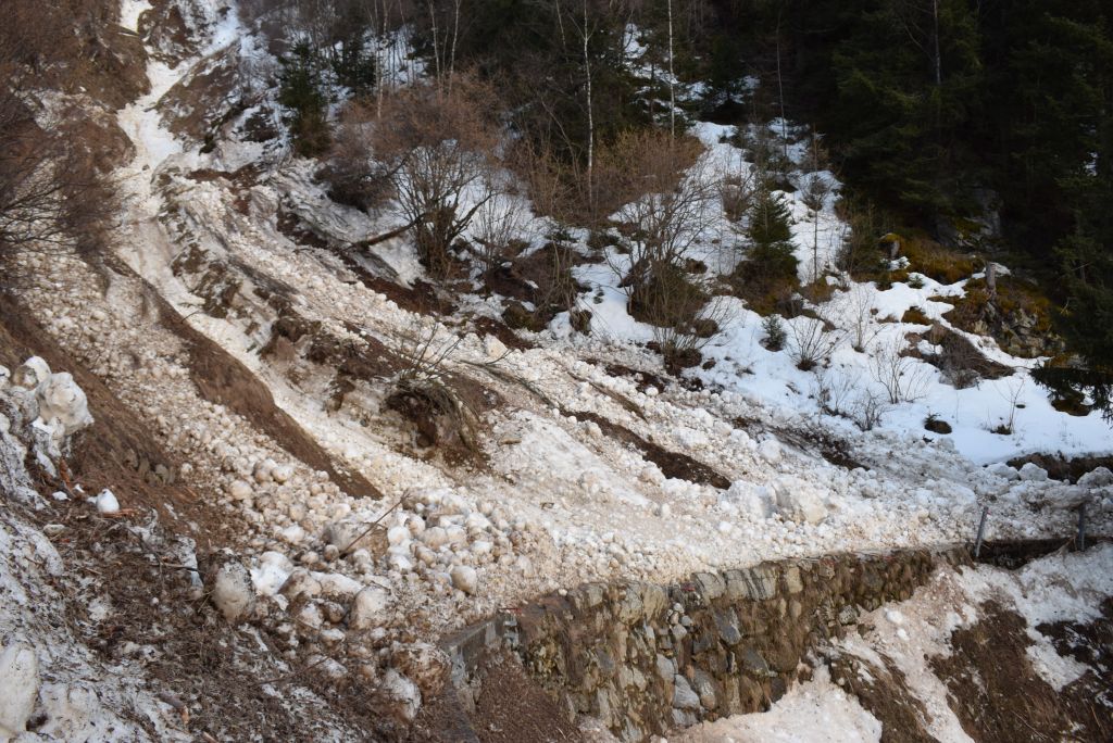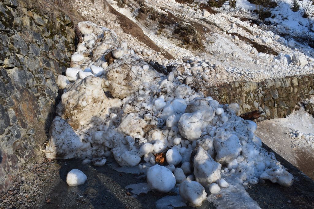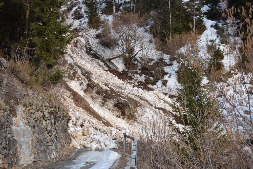 La valanga ha ostruito la strada poco dopo la zona "al Castel"