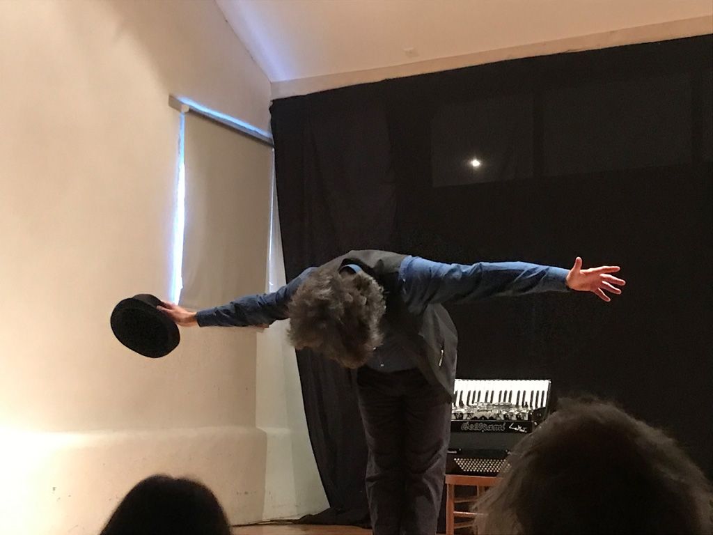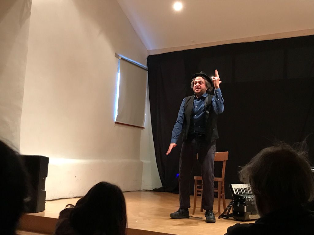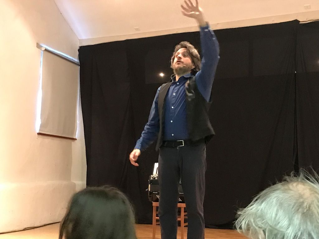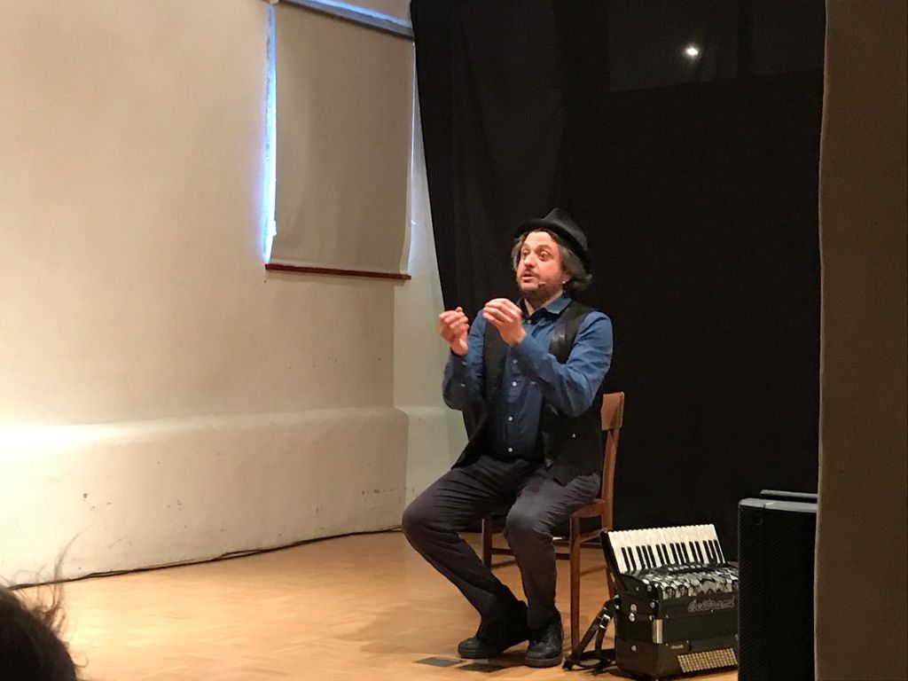 Sin dall’inizio, anzi ancora quando il pubblico stava entrando nella sala spettacoli di Casa Besta, Il Matto – Matteo Curatella – ha saputo magnificamente coinvolgere gli spettatori in uno spettacolo in cui, sin dai primi istanti, ha regalato un’ora di puro e sano divertimento. La sala era gremita, una cinquantina di persone, il maggior numero di spettatori da quando è stata avviata la rassegna I Monologanti, come ha detto commossa la promotrice Begoña Feijo Fariña.