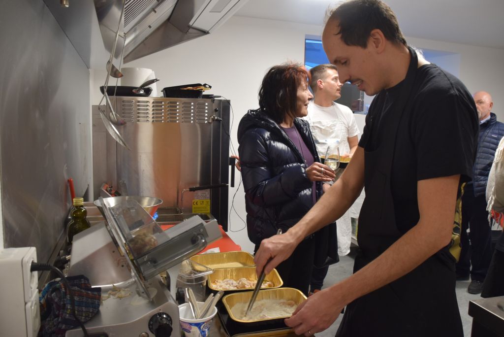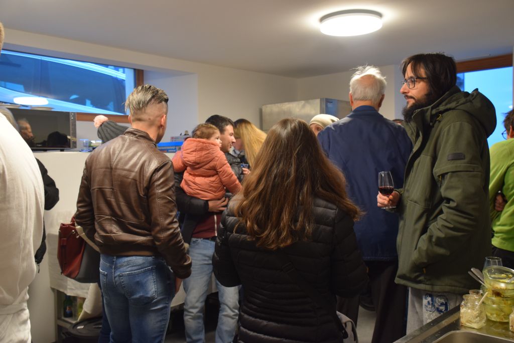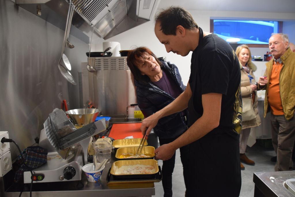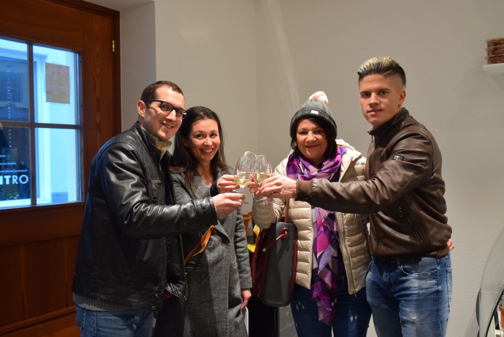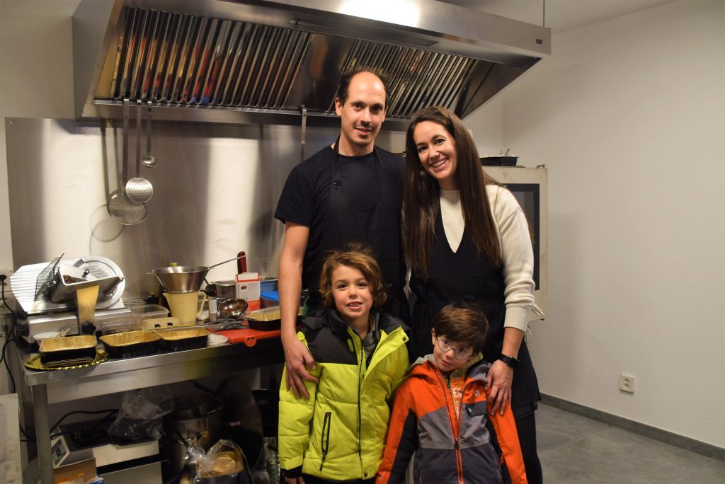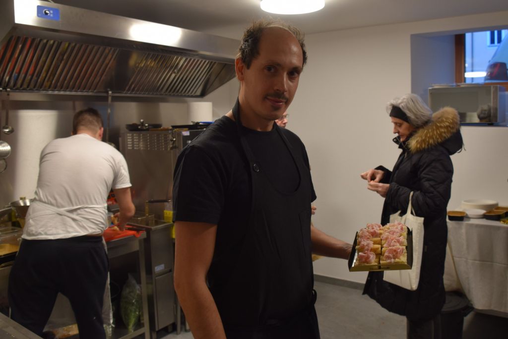 Serie di immagini dell'inaugurazione del negozio di gastronomia di Alessio Muscas e della moglie Tatjana sito in Via da Mezz 38 a Poschiavo.