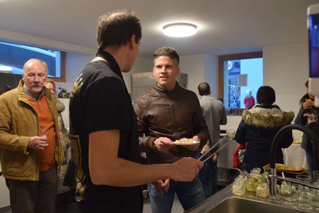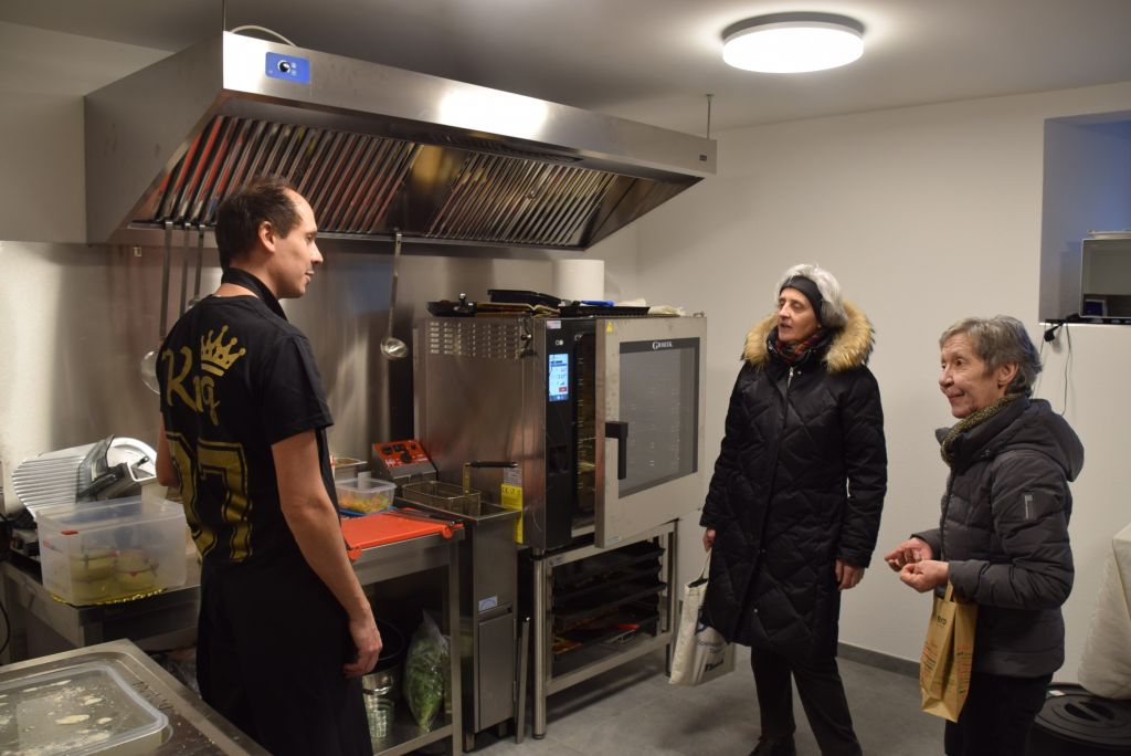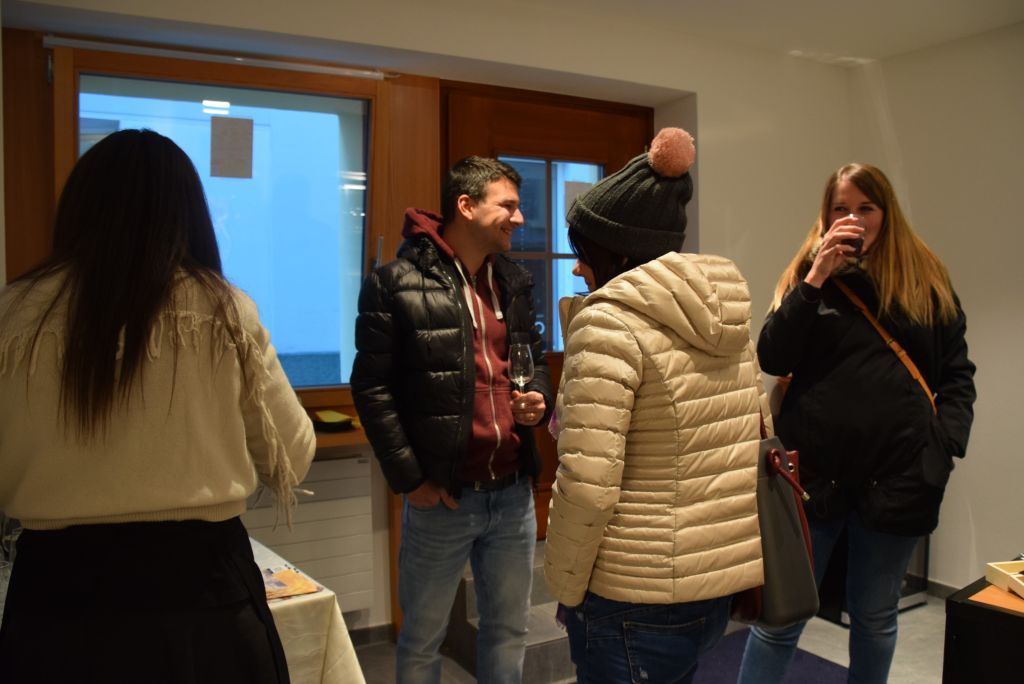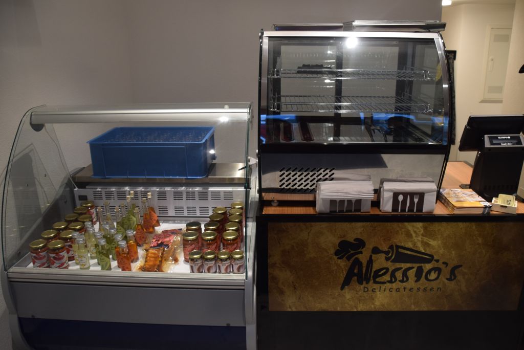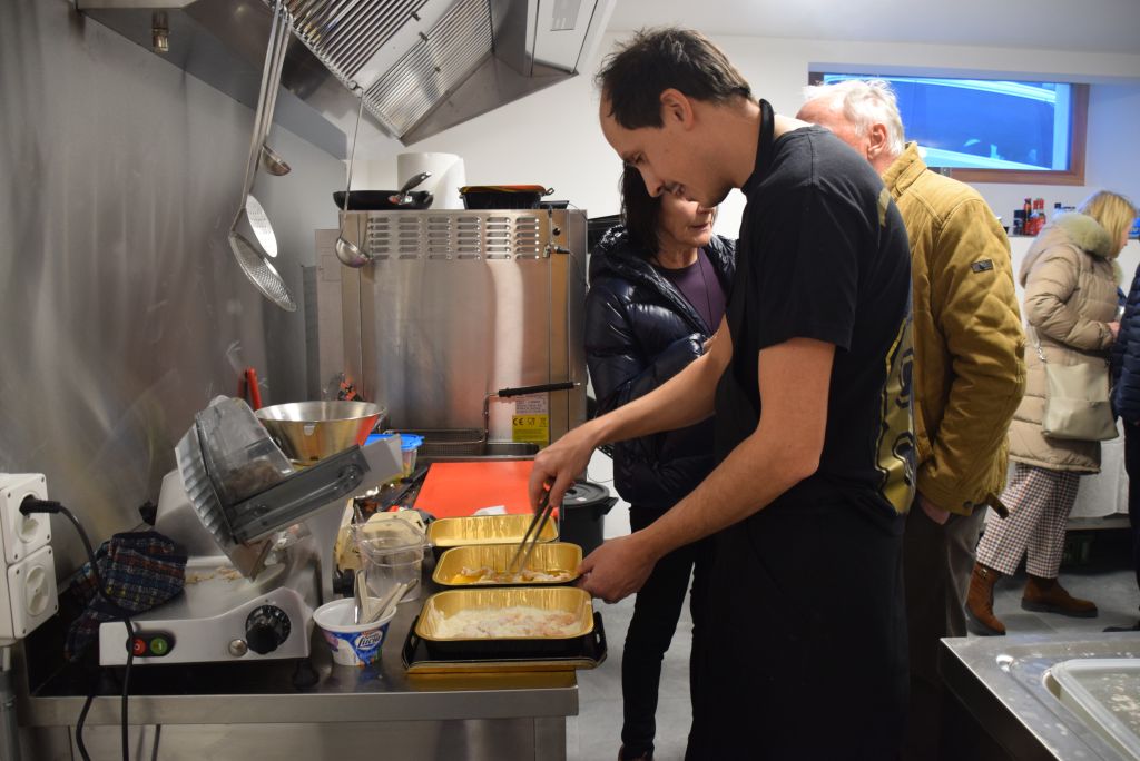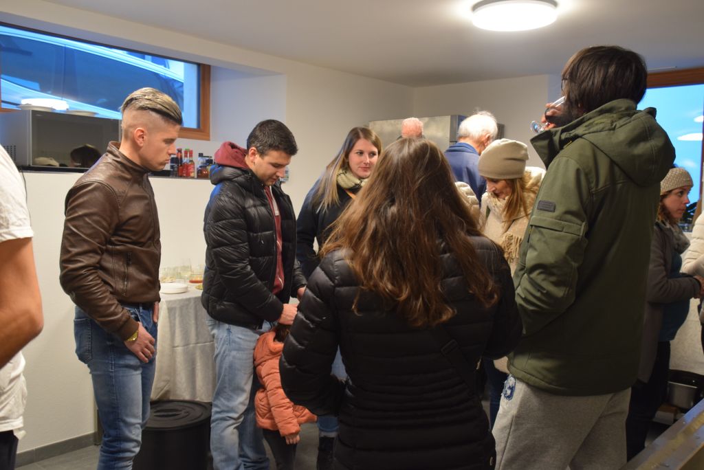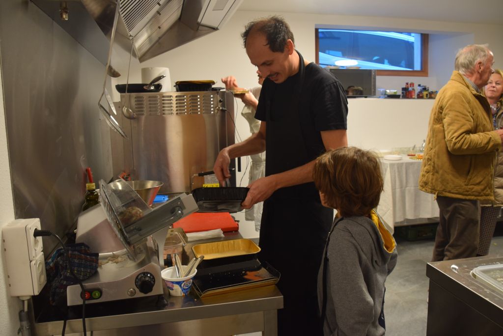 Serie di immagini dell'inaugurazione del negozio di gastronomia di Alessio Muscas e della moglie Tatjana sito in Via da Mezz 38 a Poschiavo.