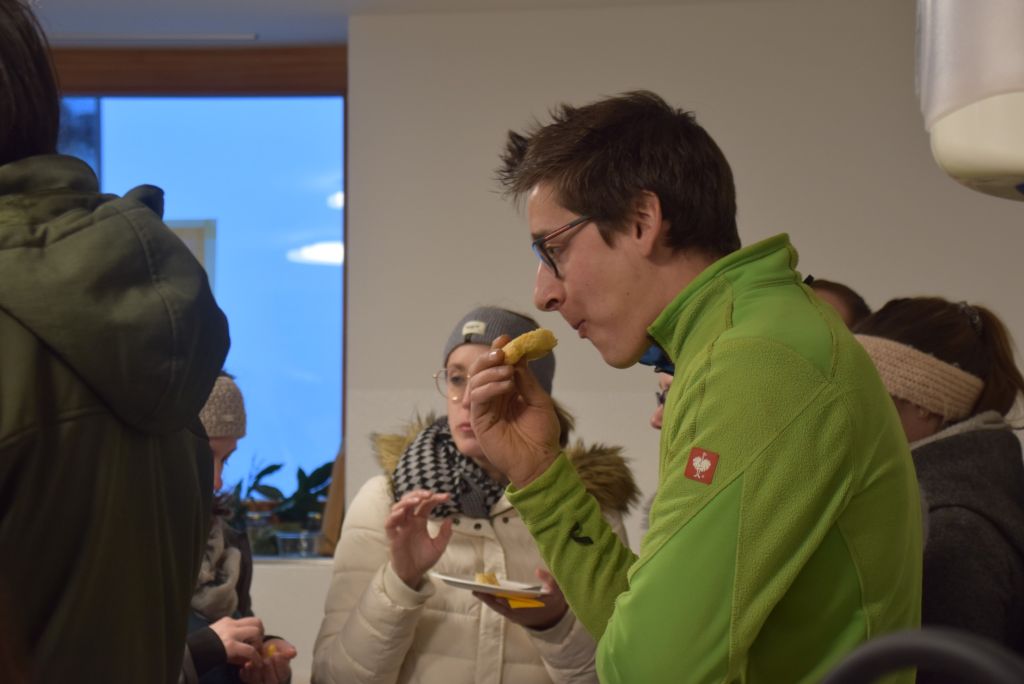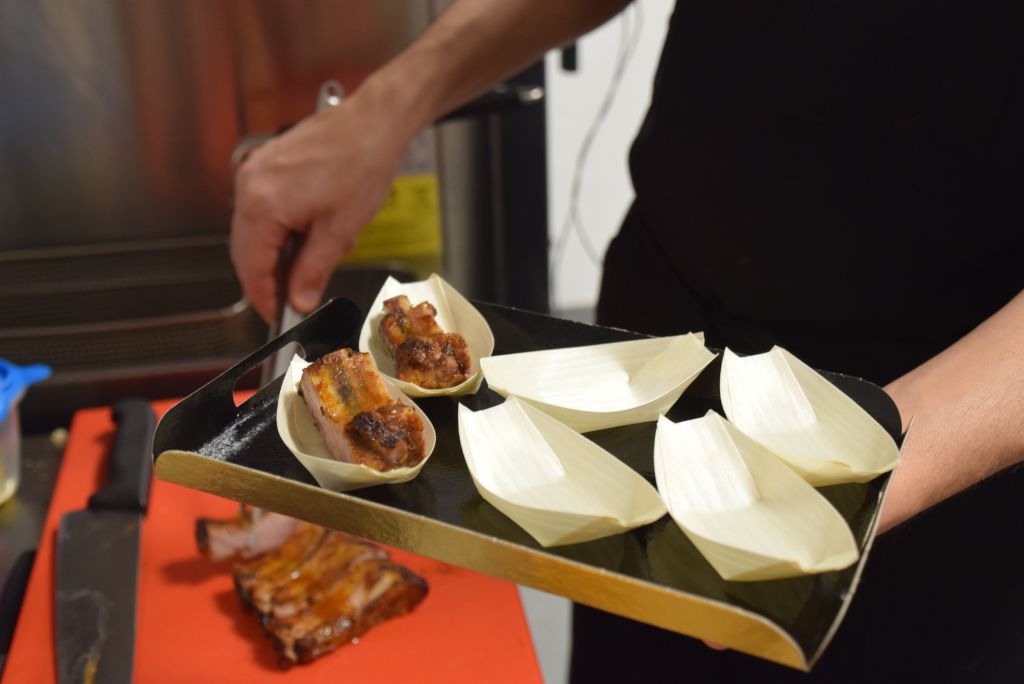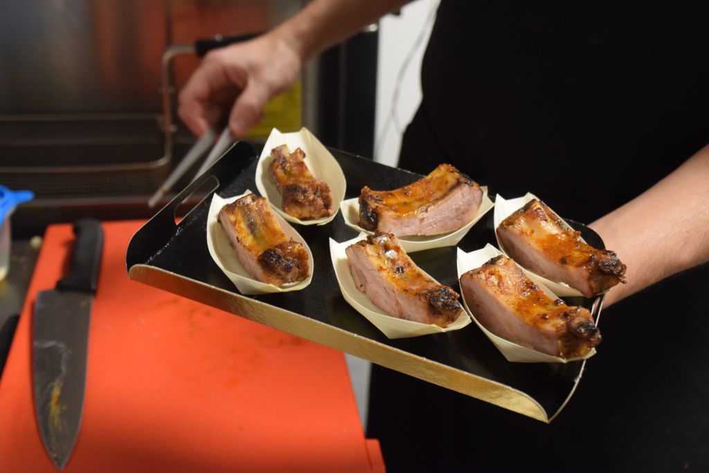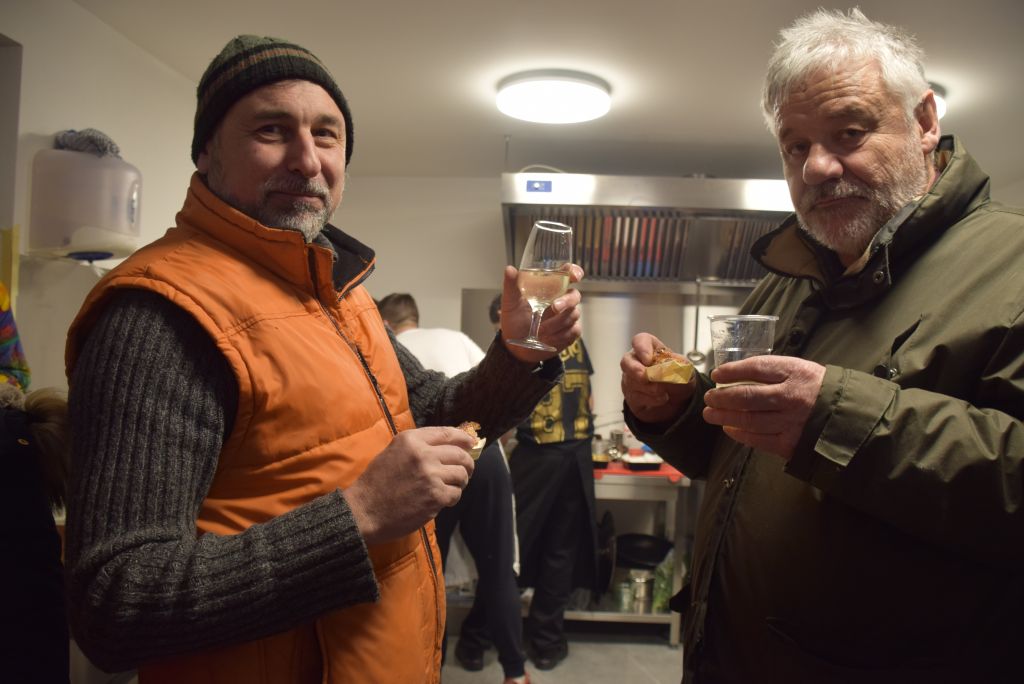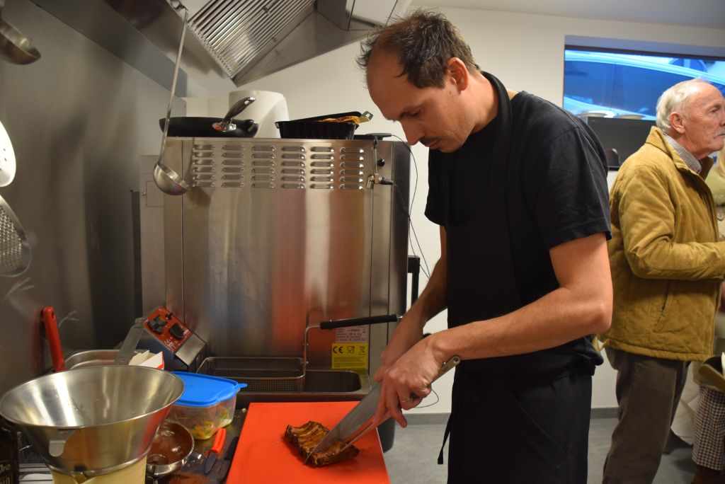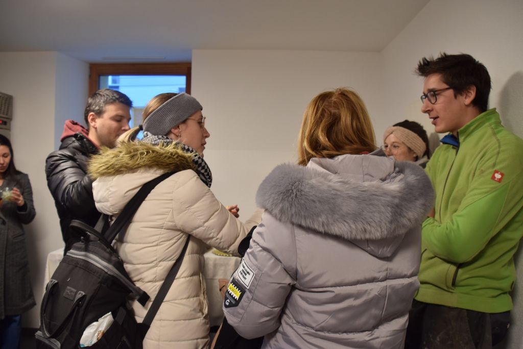Serie di immagini dell'inaugurazione del negozio di gastronomia di Alessio Muscas e della moglie Tatjana sito in Via da Mezz 38 a Poschiavo.