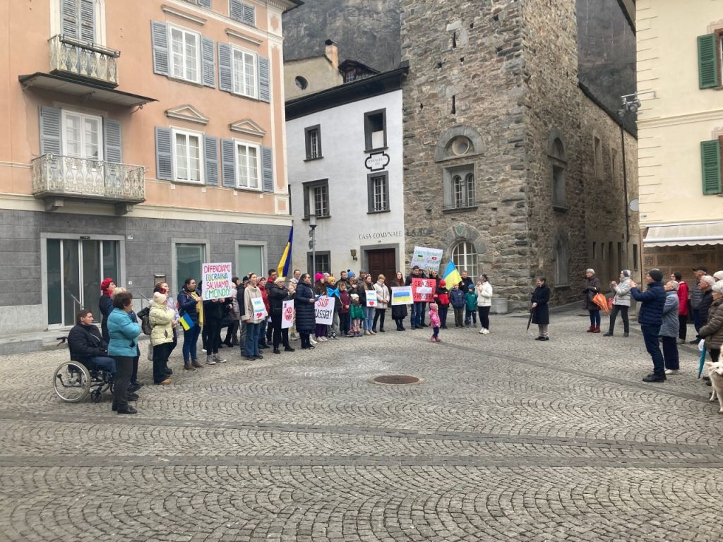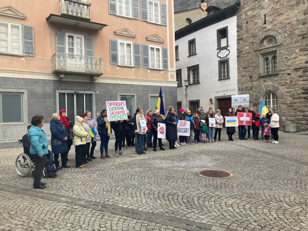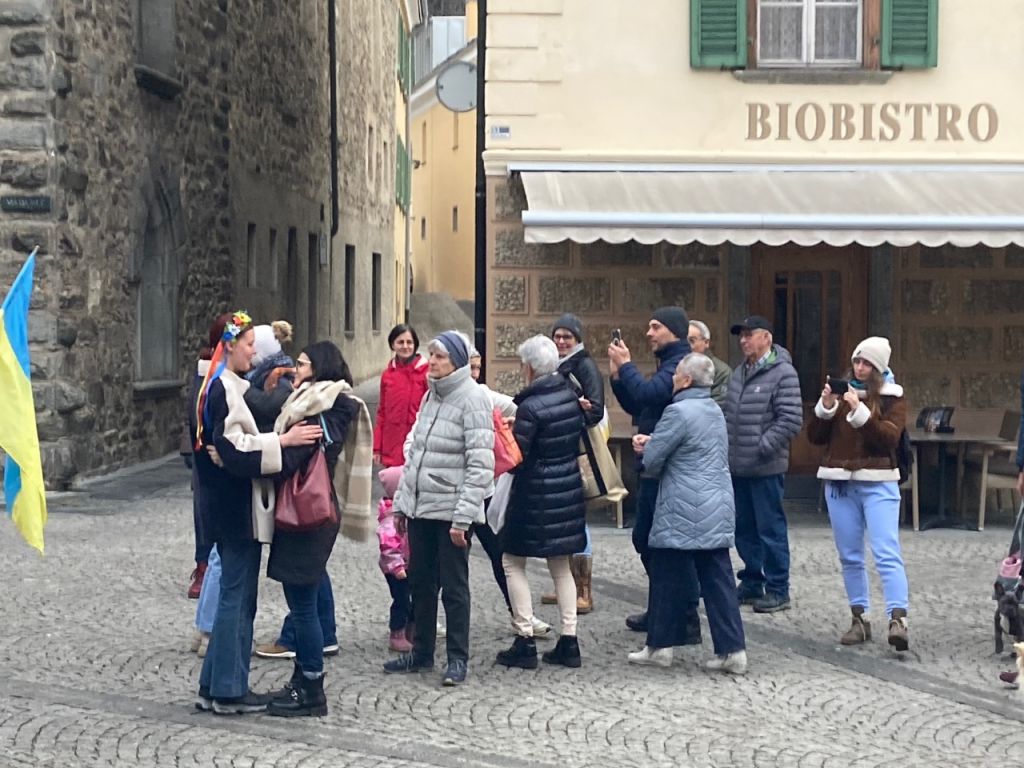 I ospiti ucraini hanno manifestato questo pomeriggio, intorno alle ore 16.00, nella Piazza comunale di Poschiavo ricordando l'anniversario dell'inizio della guerra nel loro Paese.