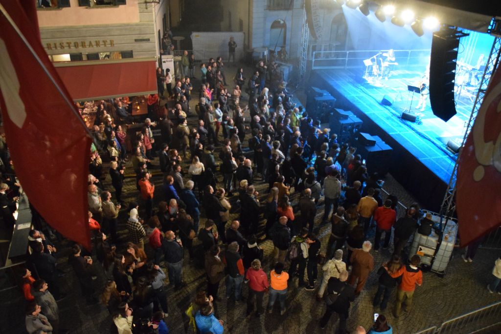 Molte le persone che ieri sera venerdì 6 maggio 2023 hanno seguito il concerto di Davide Van De Sfross sulla piazza di Poschiavo.