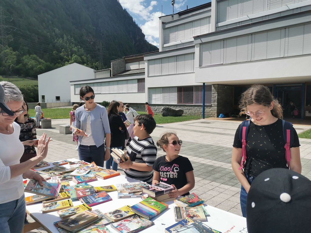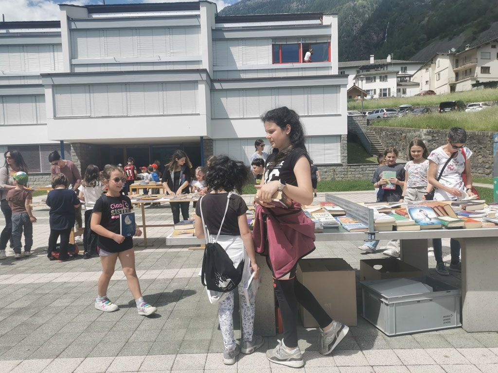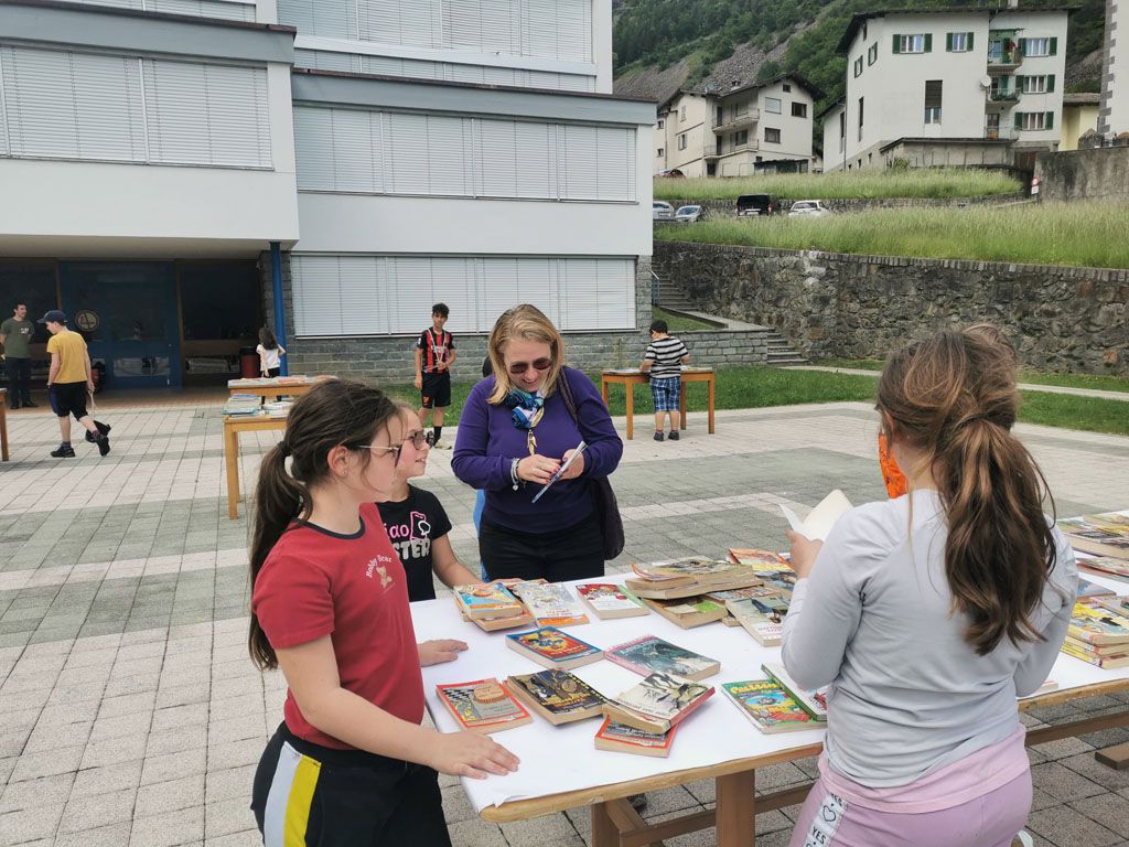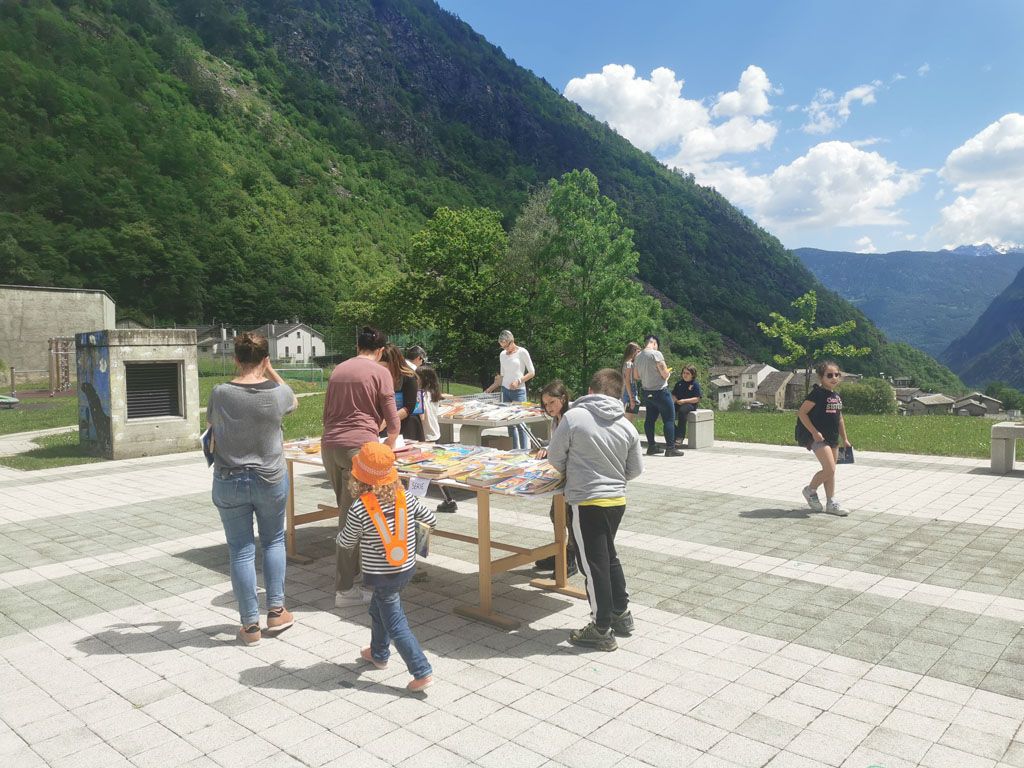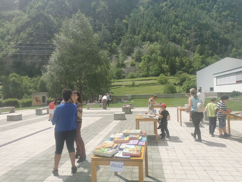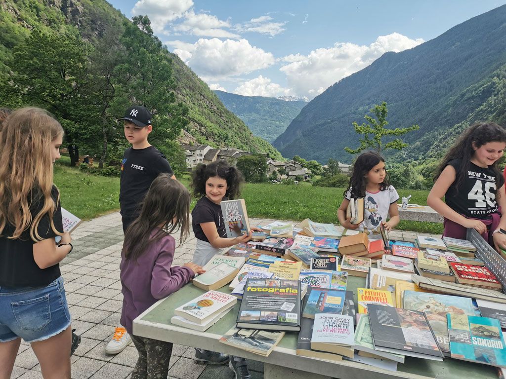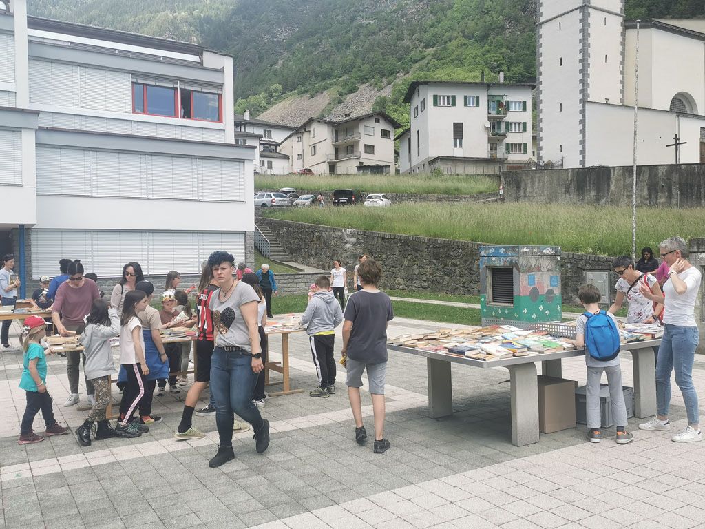 Ampia galleria fotografica del mercatino del libro usato organizzato nel giardino della sede scolastica di Brusio dalla Biblioteca comunale Brusio in collaborazione con le scuole comunali primarie e dell’infanzia.