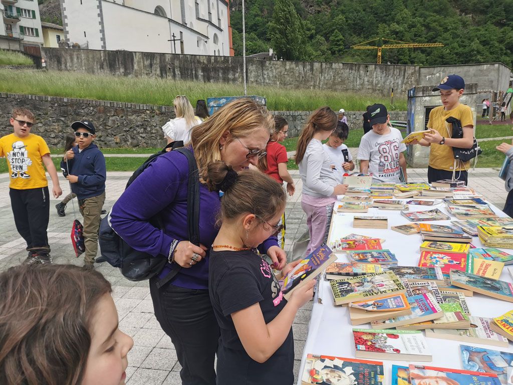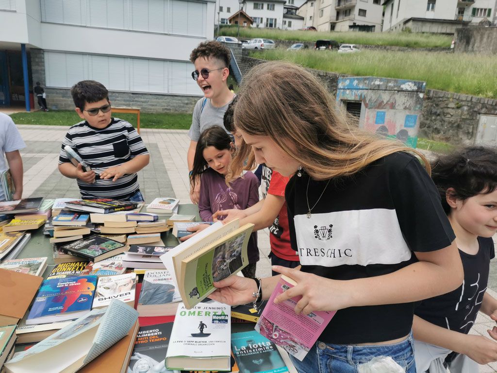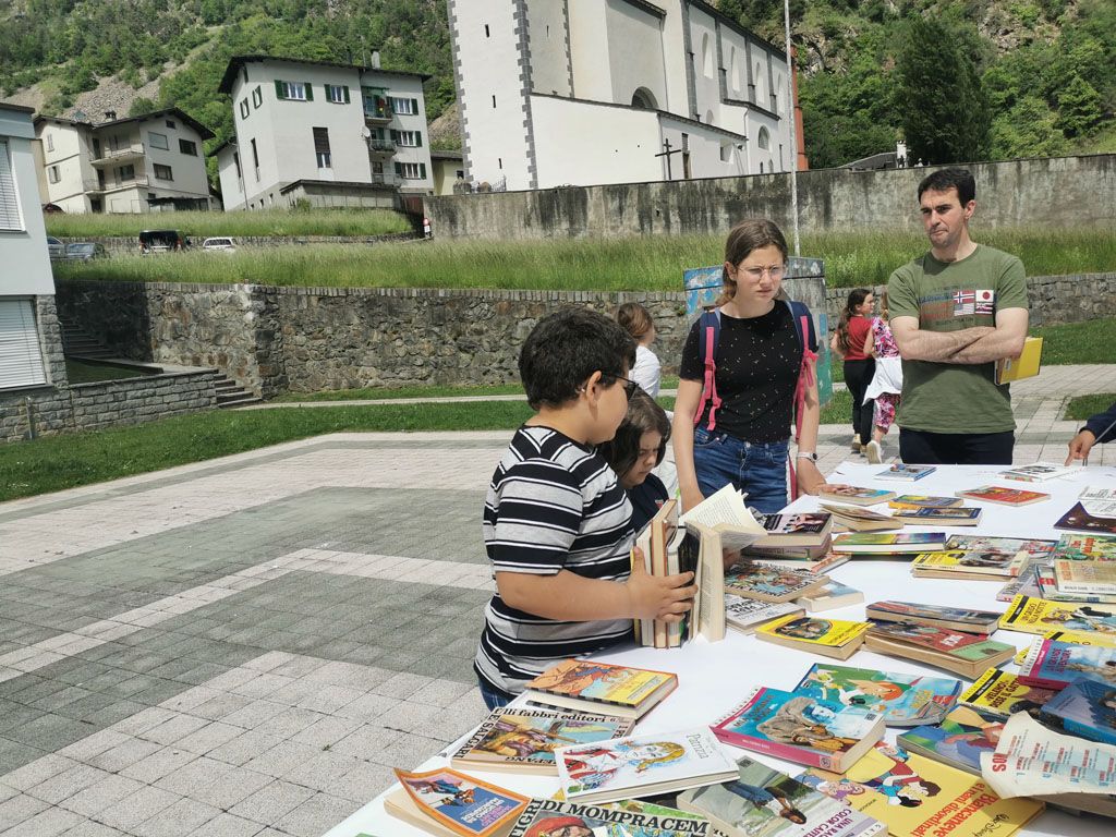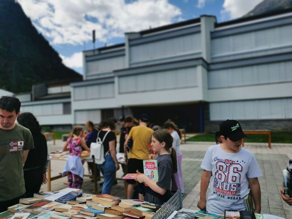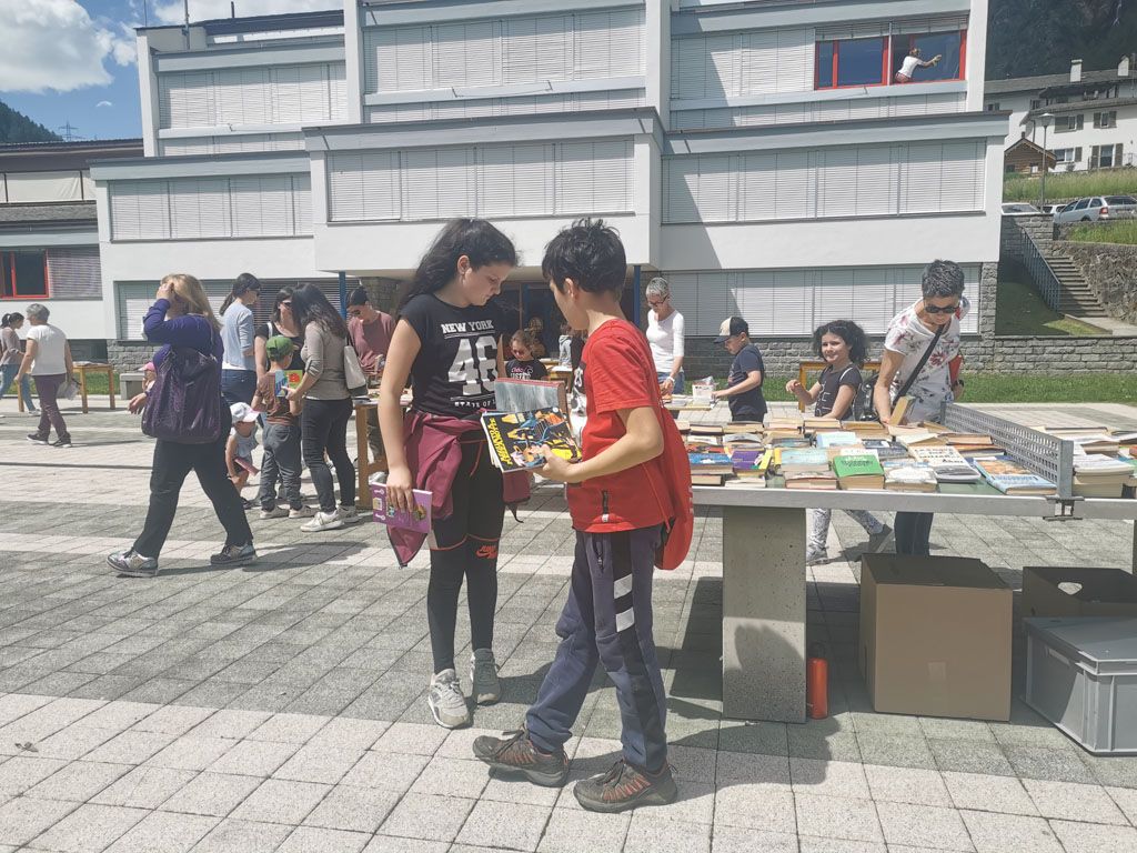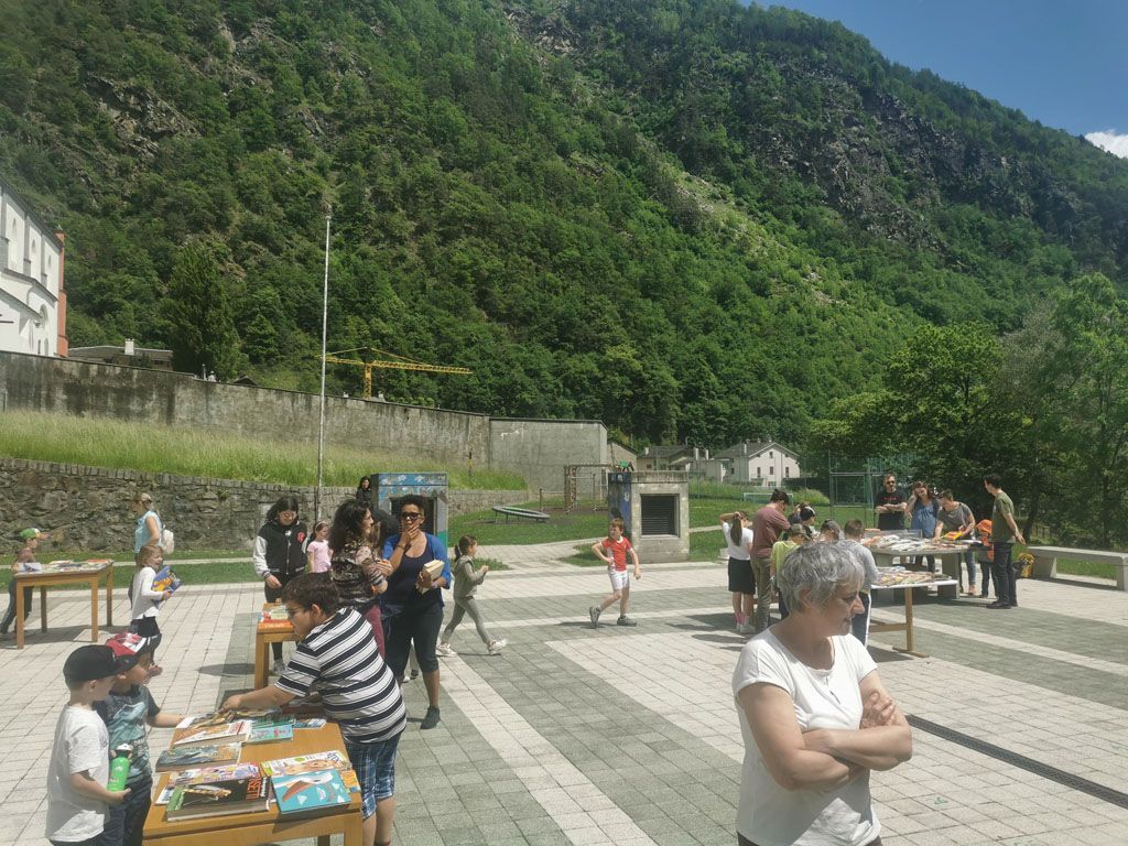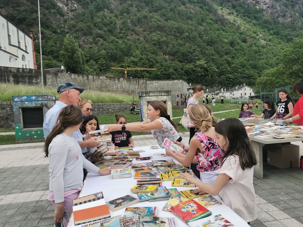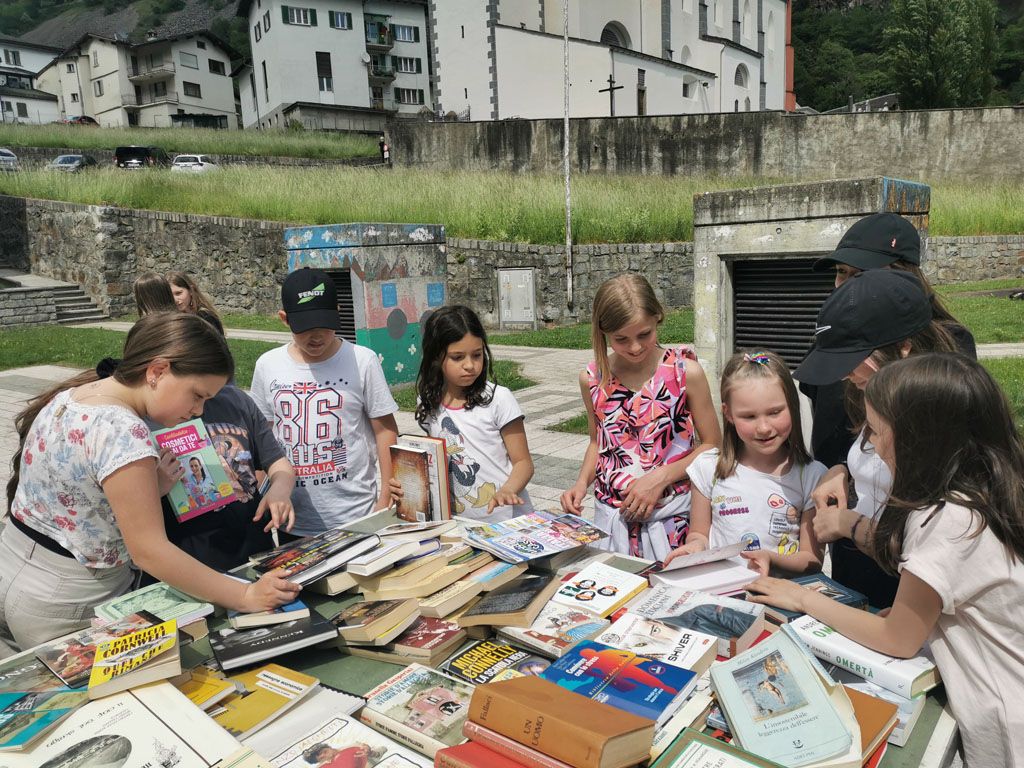 Ampia galleria fotografica del mercatino del libro usato organizzato nel giardino della sede scolastica di Brusio dalla Biblioteca comunale Brusio in collaborazione con le scuole comunali primarie e dell’infanzia.