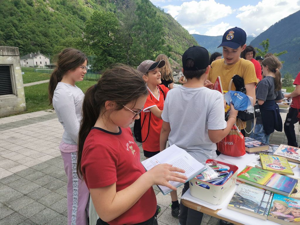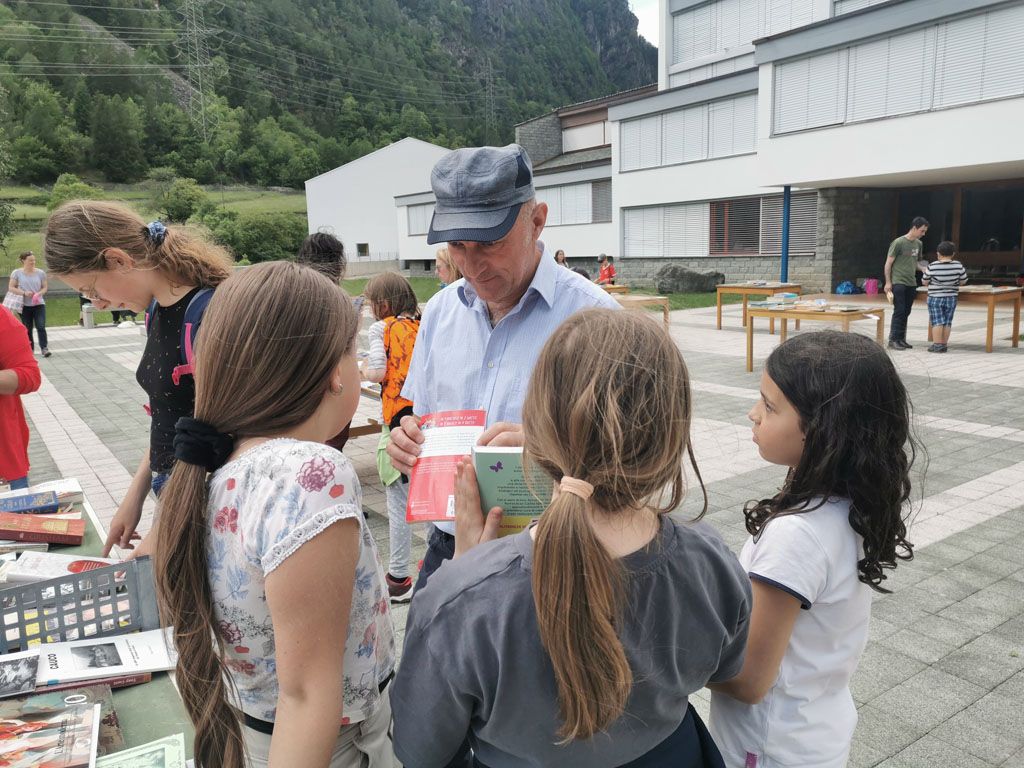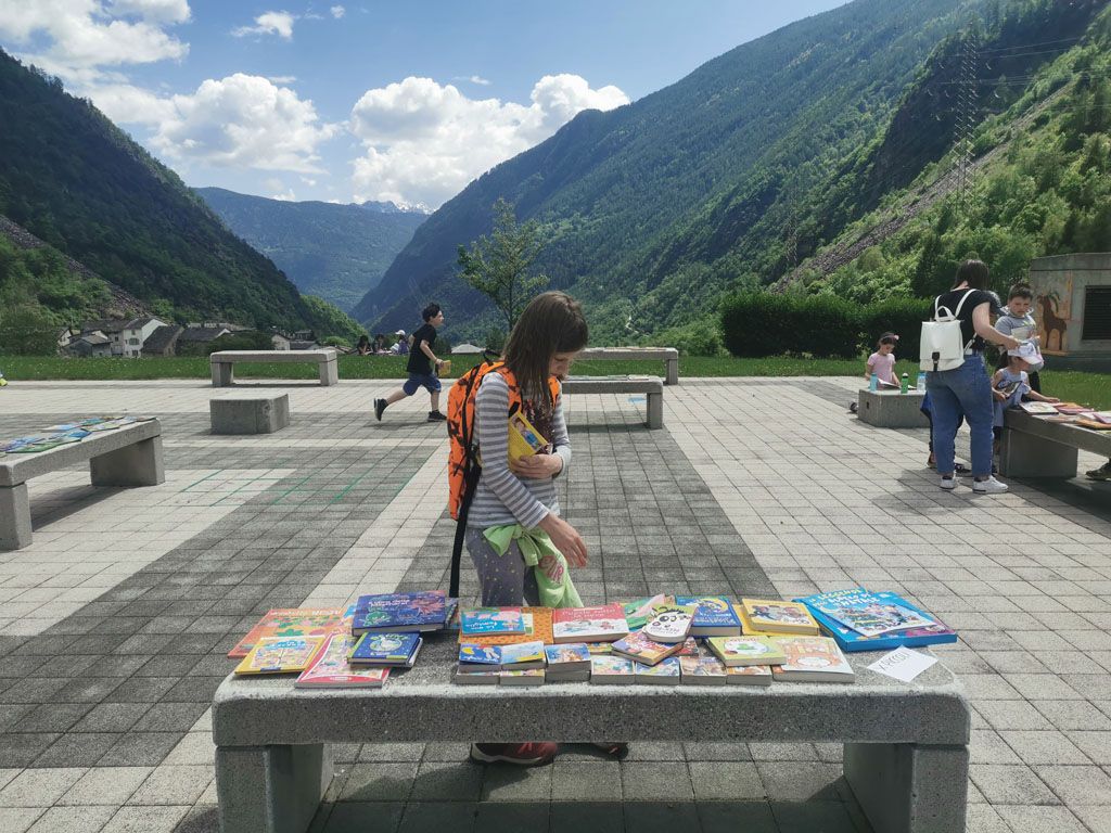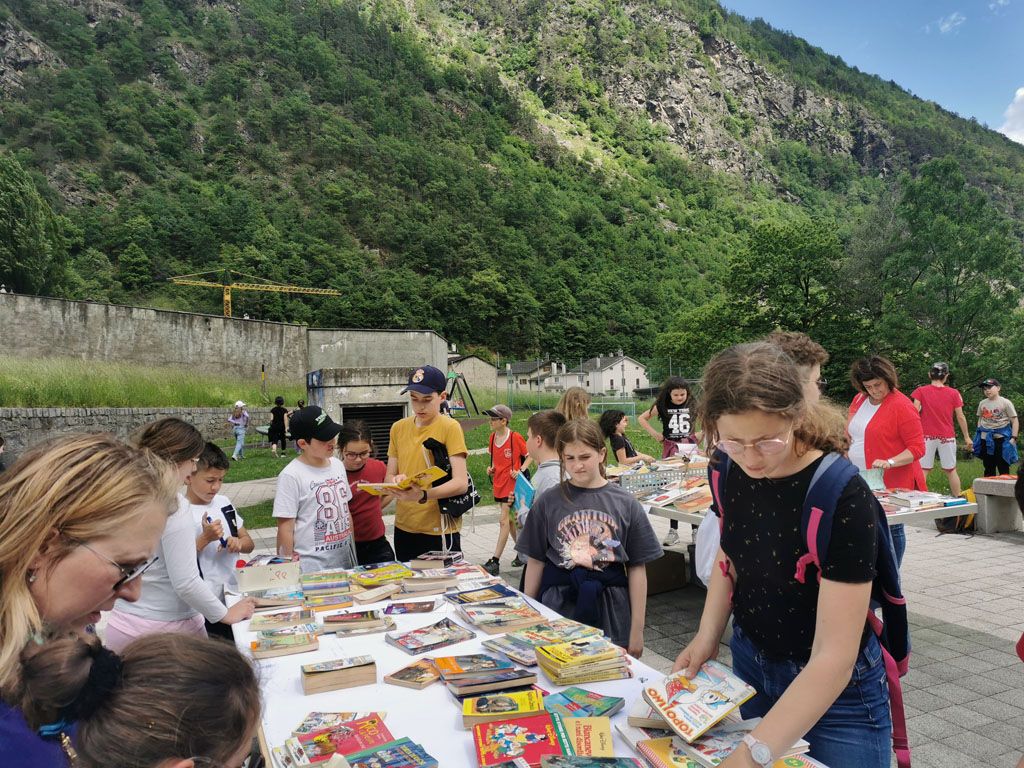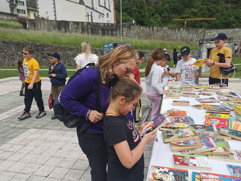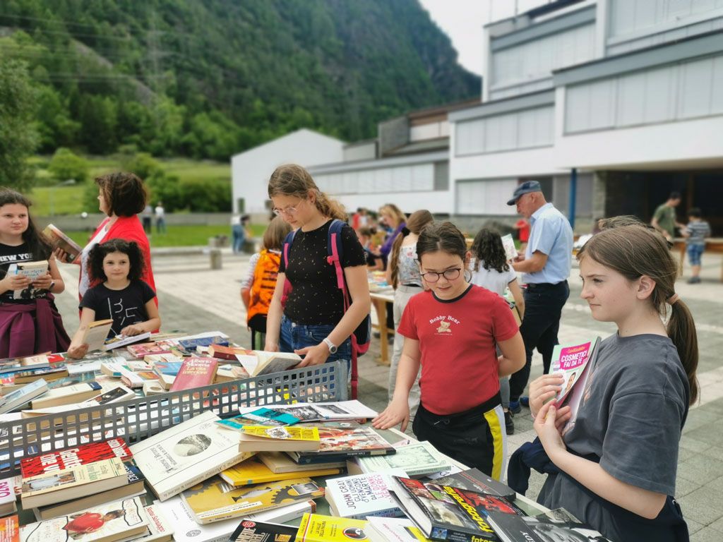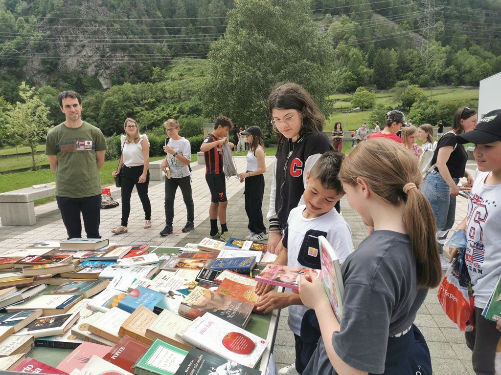 Ampia galleria fotografica del mercatino del libro usato organizzato nel giardino della sede scolastica di Brusio dalla Biblioteca comunale Brusio in collaborazione con le scuole comunali primarie e dell’infanzia.
