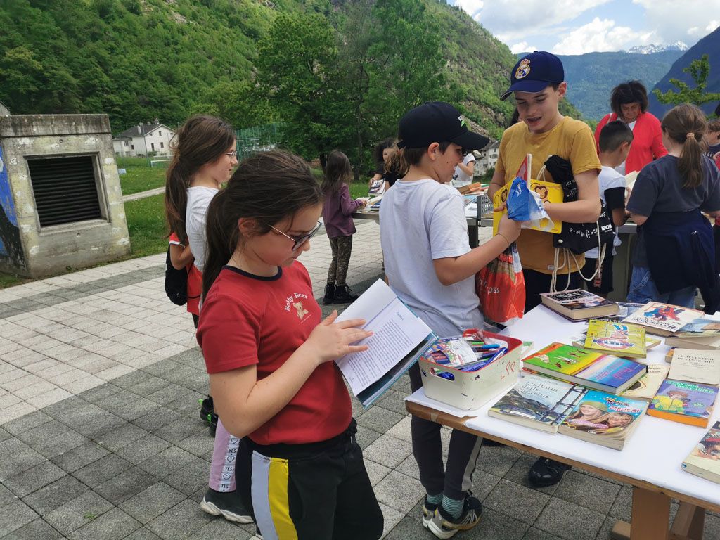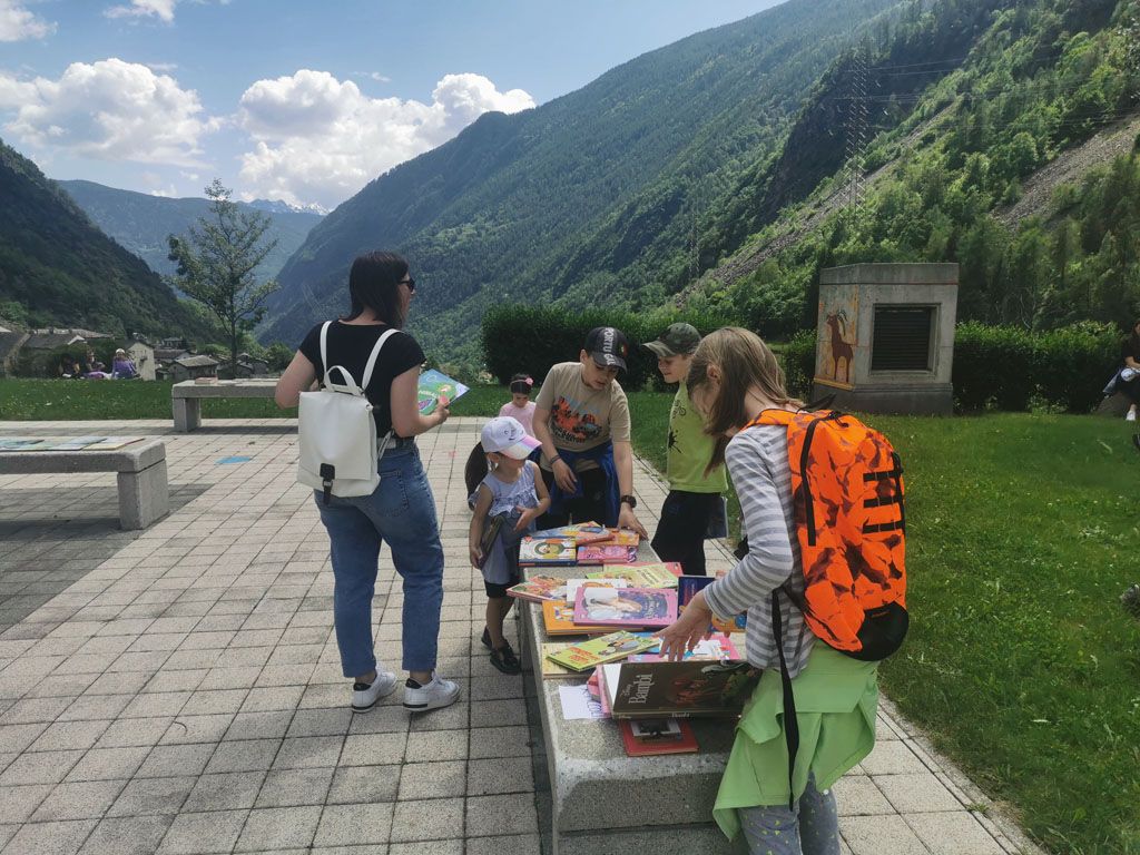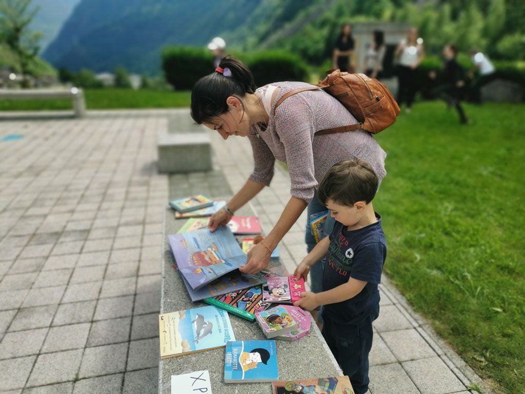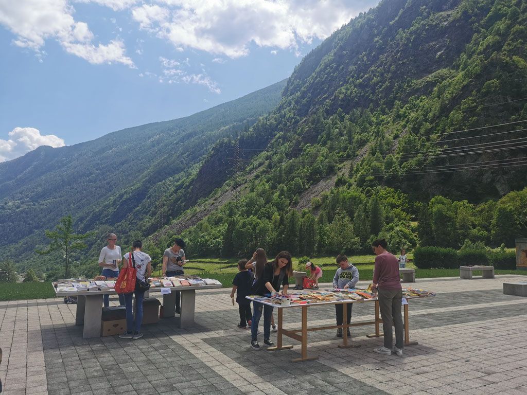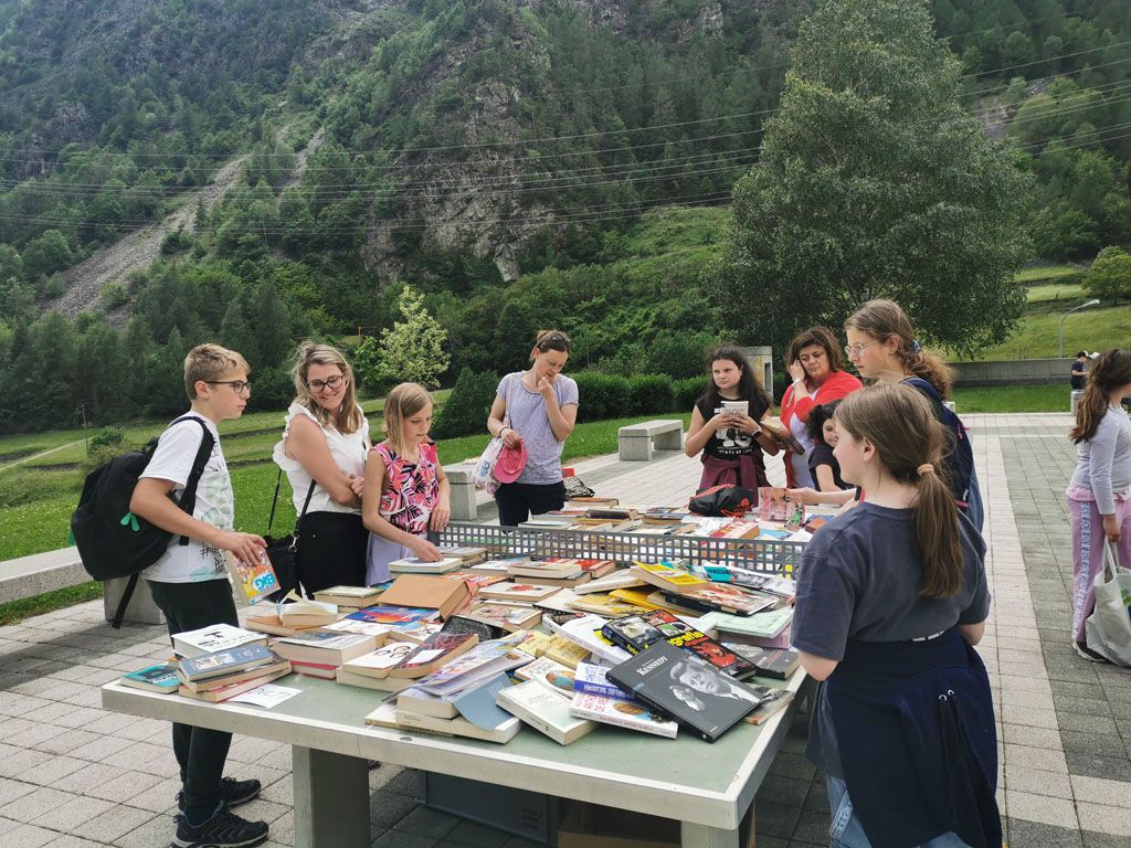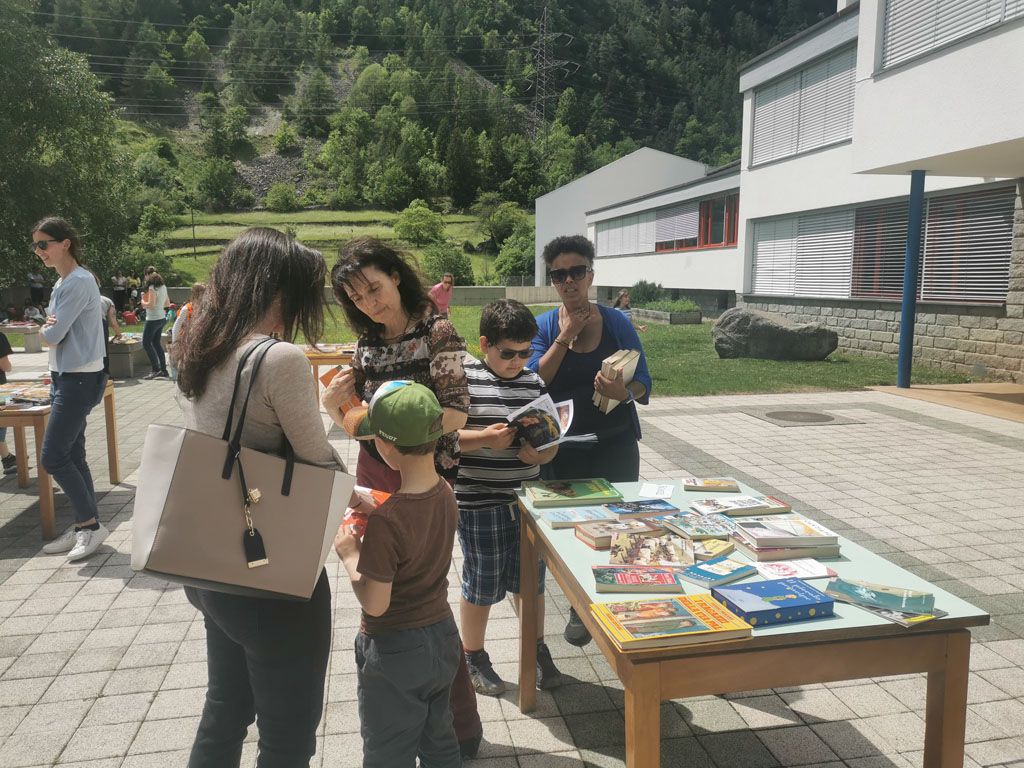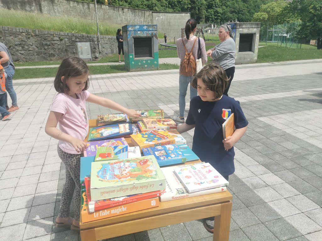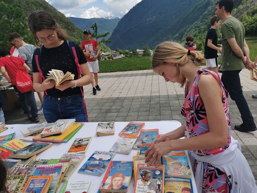 Ampia galleria fotografica del mercatino del libro usato organizzato nel giardino della sede scolastica di Brusio dalla Biblioteca comunale Brusio in collaborazione con le scuole comunali primarie e dell’infanzia.